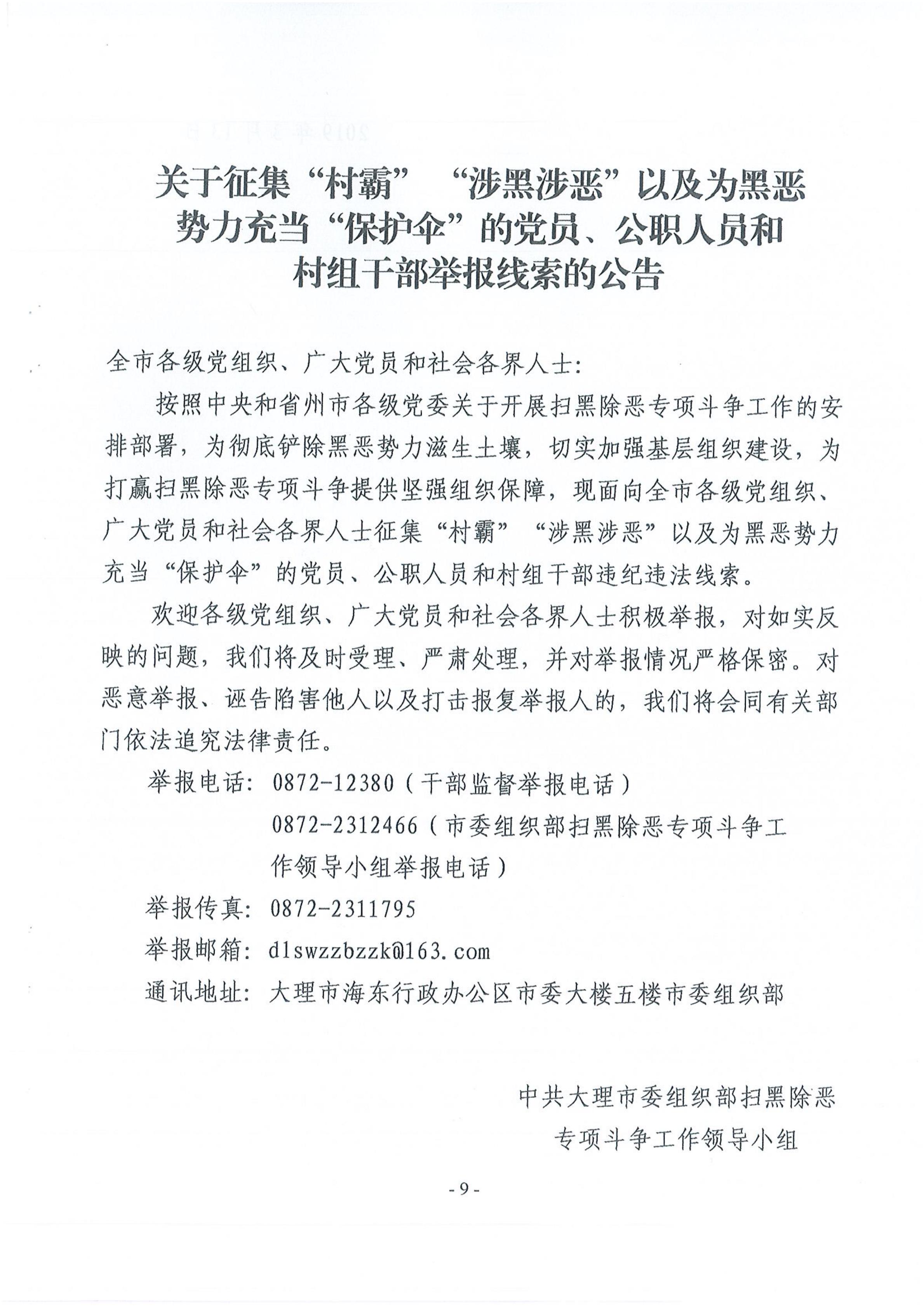 大理市組織部門參與掃黑除惡專項斗爭宣傳動員手冊