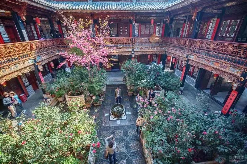 張家花園被稱之為“彩云之南的夢幻茶花民居”被山茶花和杜鵑花、十八溪水包圍。它是大理白族建筑歷史與白族民間的私家花園的結(jié)合。院內(nèi)各種鮮花爭奇斗艷為居所增添色彩。