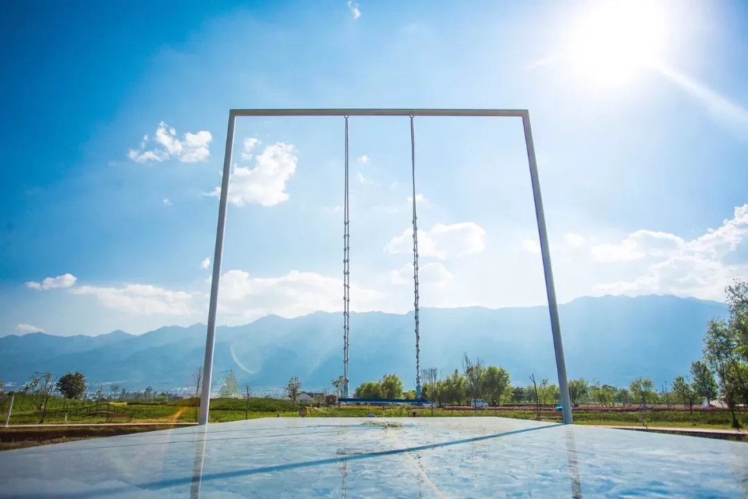 美照的產(chǎn)生地,玻璃教堂、黃色花田、藍(lán)色小房子、天空之境、大秋千,你想到的拍照道具這里都有。