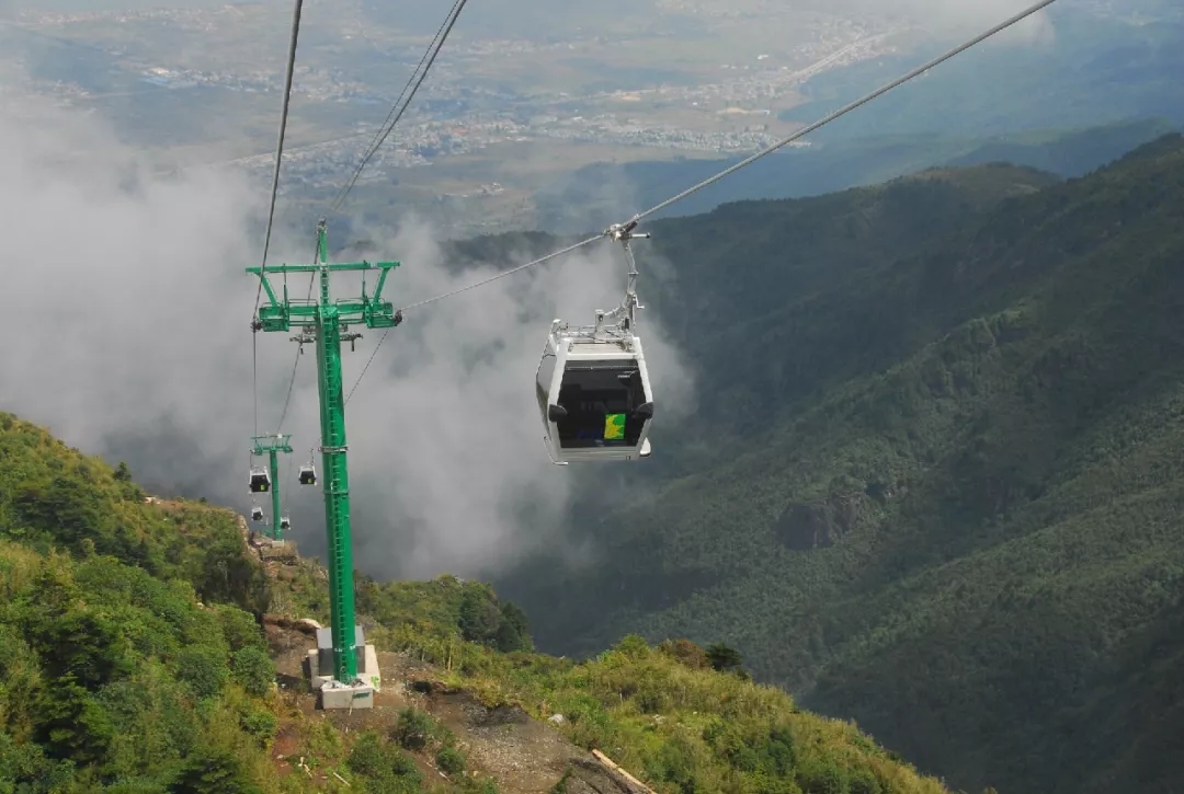 洗馬潭索道是登上蒼山最大的索道,不僅能俯瞰洱海,還能看到清澈見底的洗馬潭。國(guó)慶去,蒼山是青黃色的。坐在索道里霧氣還未完全散去,隨著霧氣的消散蒼山在不停地變幻著,可以看到千姿百態(tài)的山峰。兩邊低矮的灌木叢蔥蔥郁郁,高大的松樹和冷杉則沒有那么蒼翠了,透出絲絲秋意。
