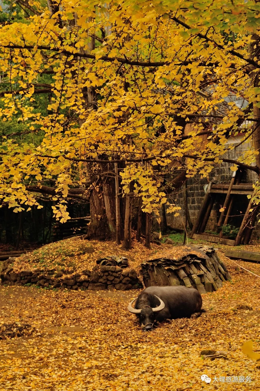 3000多株珍貴的百年銀杏包圍著整個(gè)村落,放眼望去金黃的銀杏與藍(lán)天交織,一幅現(xiàn)實(shí)版的印象派油畫。