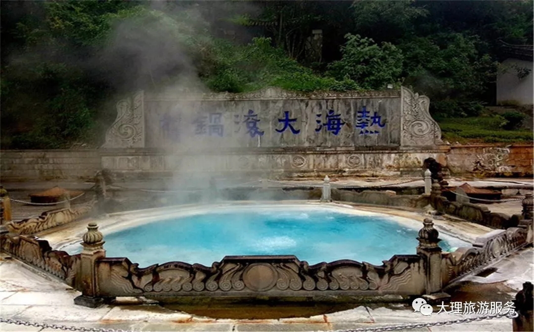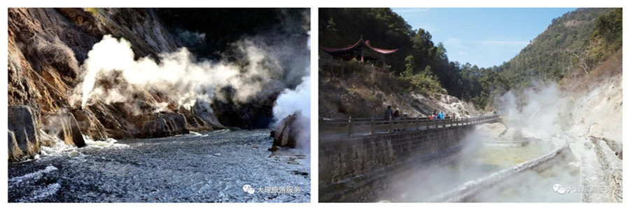 熱海中最典型的是大滾鍋—一個(gè)直徑6m的圓形溫泉池,水溫約96℃,在這里,可以看到云南十八怪“雞蛋用草串著賣”,從大滾鍋出來(lái)的雞蛋,大家一定不能錯(cuò)過(guò)!