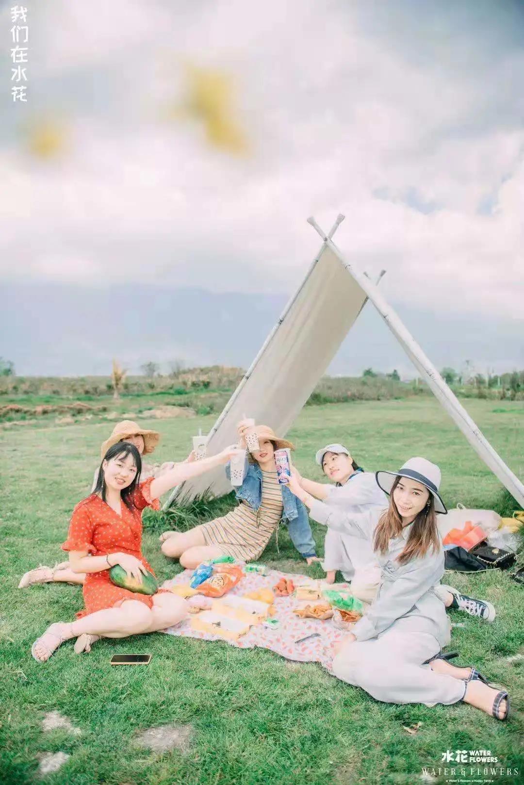 大家在云海芳草觀花海,看露天電影,吃燒烤,
