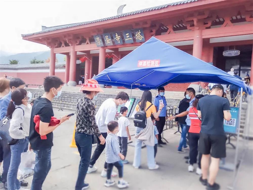各大景區(qū)皆嚴(yán)格按照疫情防控要求,嚴(yán)格執(zhí)行預(yù)約、錯峰、分流的入園政策。據(jù)介紹,大理古城日接待量達(dá)86920人將停止接待游客,崇圣寺三塔景區(qū)日接待量達(dá)32000人將停止接待游客,雙廊古鎮(zhèn)日接待量達(dá)26193人將停止接待游客,理想邦旅游度假小鎮(zhèn)每小時達(dá)1500人左右將停止接待游客……同時,做好入園前的掃碼、體溫檢測,引導(dǎo)游客保持間距入園等工作,確保疫情防控各項(xiàng)措施落實(shí)到位,力爭讓每一位游客玩得放心、游得舒心。