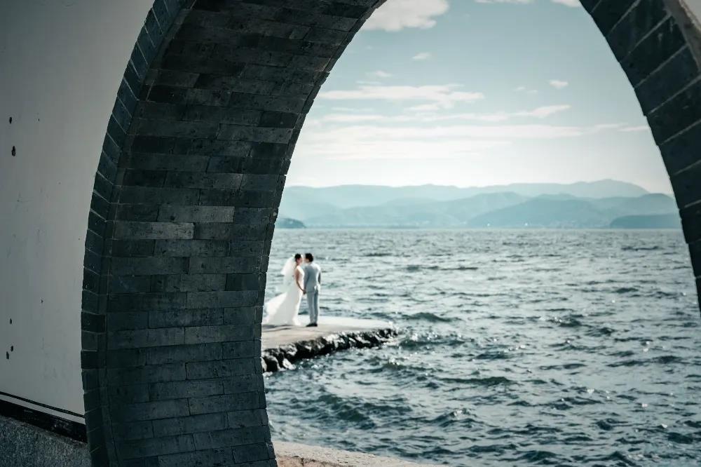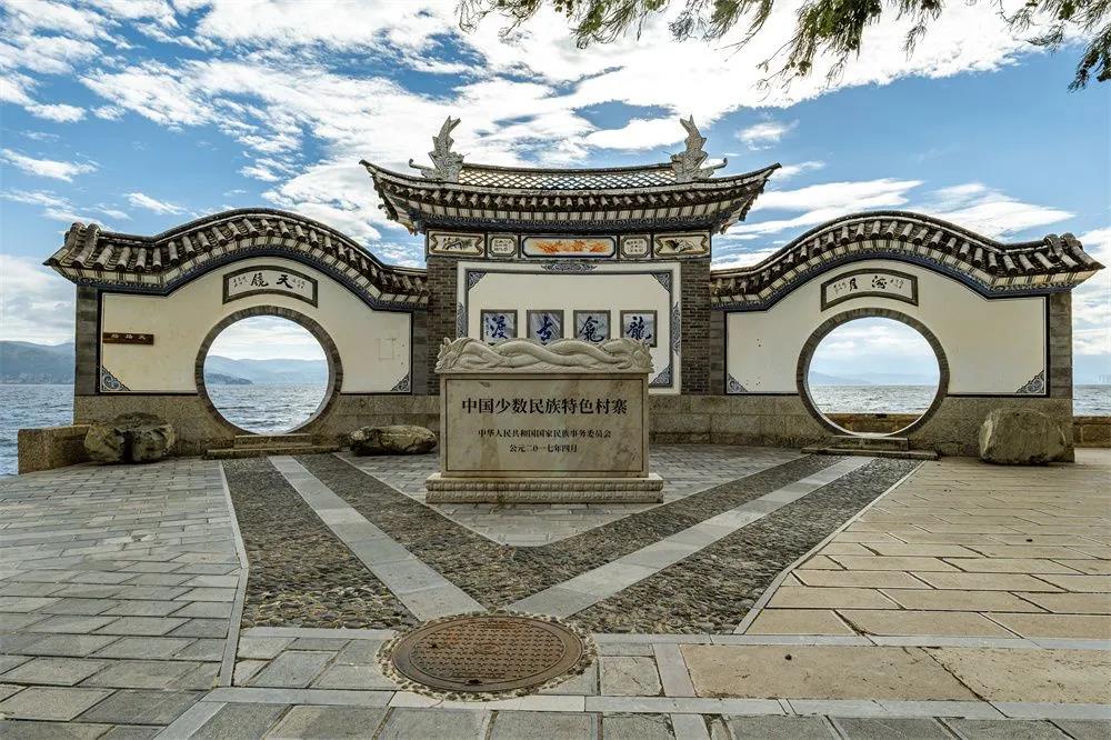一個(gè)長(zhǎng)方形的白族照壁兩側(cè)