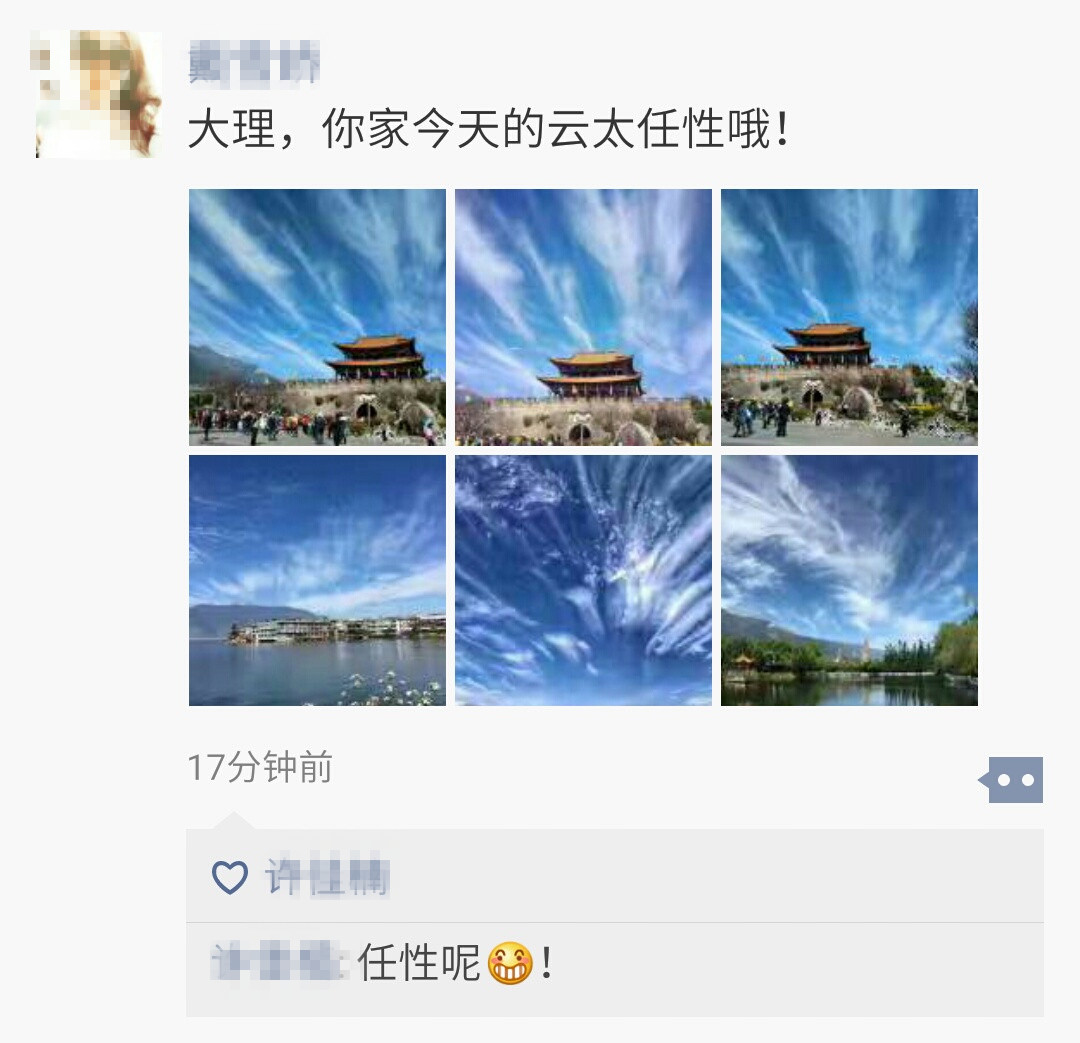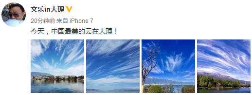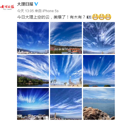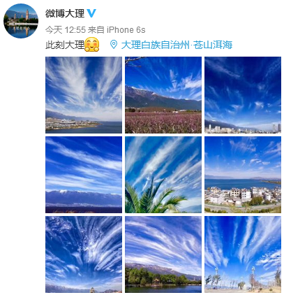今天的大理,美出了新高度。小編用再多美麗的文字也形容不盡今日大理天空和白云的美。在大理的小伙伴們還是自己抬頭欣賞吧......