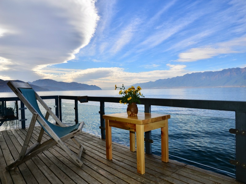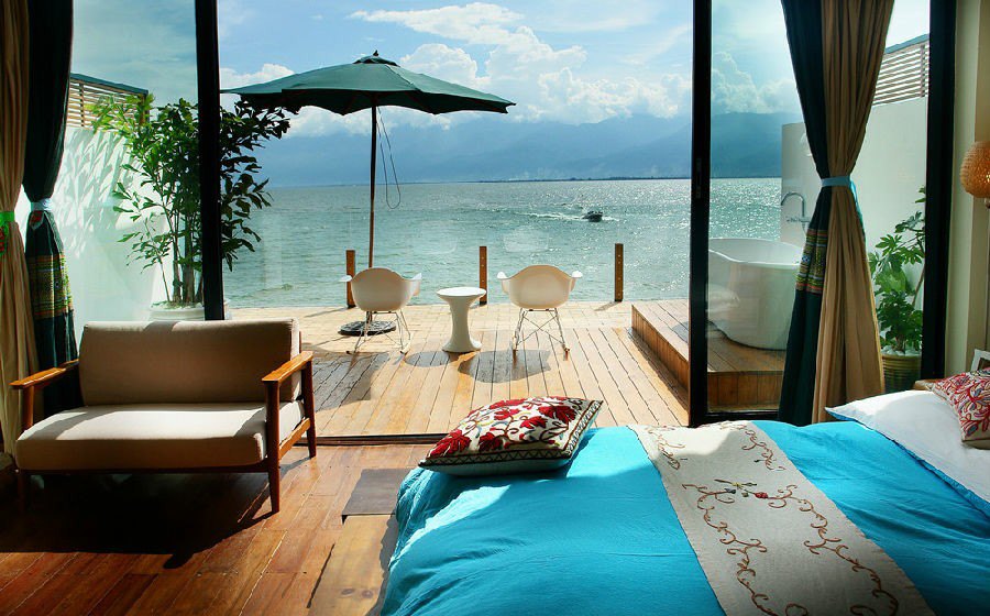 雙廊面對蒼山洱海的方向朝西,因此,如果海景房是東西朝向的,視野將會非常開闊;而要是為南北朝向,或許房間也是靠海,但面對的可能只是一小片海灣,這就談不上無敵海景了。