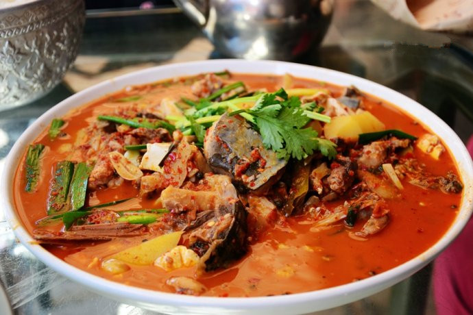 大理酸辣魚的普遍做法是用醋、干木瓜片或新鮮酸木瓜做出酸味,而雙廊當(dāng)?shù)刈鏊崂濒~用的是燉梅,用燉梅煮酸辣魚可以算作是洱源的做法,因為洱源是“梅子之鄉(xiāng)”,雙廊在2004年之前還是洱源縣下轄的鄉(xiāng)鎮(zhèn),此后才劃歸于大理市。所以,到雙廊吃酸辣魚,如果里面沒有燉梅,那就不是正宗的雙廊酸辣魚了。