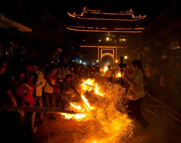 火把節(jié)是一個(gè)玩火的節(jié)日,是日,整個(gè)古城被火光照亮,古城里的街道和廣場(chǎng)都匯成一片火海,人們手持火把,相互朝火把撒松香祝福。氣氛之熱烈,場(chǎng)面之壯觀,令人驚嘆不已!