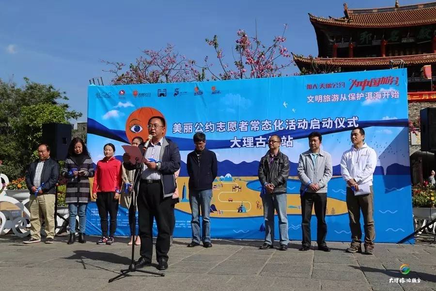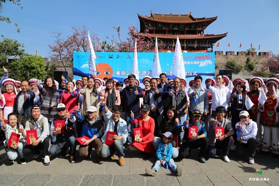 4月10日,2017年大理三月街民族節(jié)開幕的前一天,大理旅游集散中心(集團(tuán))有限公司積極響應(yīng)“美麗公約”文明旅游的號召,公司黨總支副書記劉安帶領(lǐng)公司20余名同志參加了在大理古城南門廣場由“美麗公約”文明旅行公益組織主辦的“‘美麗公約’志愿者常態(tài)化活動”啟動儀式。