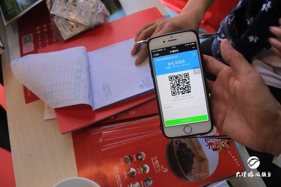 “大理好禮”掃碼抽獎活動臺前人頭攢動,百分百掃碼中獎,讓前來趕三月街的游人們既體驗了抽獎的樂趣,又帶著獎品盡興去趕街。同時,展廳內(nèi)設(shè)置的宣傳展示大理旅游攻略、各縣市景區(qū)景點及精品線路、大理旅游景區(qū)直通車線路等的展臺引來大家駐足挑選。