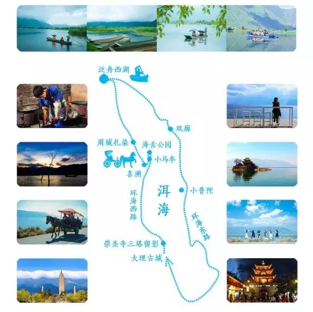 大理古城 大理古城租車出發(fā),往北走,經(jīng)過喜洲(喜洲古鎮(zhèn)、海舌公園、蝴蝶泉),沿線特色美食有很多。再往北,到達(dá)洱源縣西湖風(fēng)景區(qū),可以泛舟西湖,吃最正宗的白族美食。晚上可到雙廊吃飯看夜景。從雙廊往南行駛,經(jīng)過挖色(小普陀)和海東,到下關(guān)(洱海公園),一路環(huán)著洱海返回大理古城。 才村——領(lǐng)略海西風(fēng)光 才村位于洱海西面,大理古城東向,距離2公里。這里擁有極美的蒼山和洱海風(fēng)光,還有無法取代的海西田園風(fēng)光。你可以在才村選擇一家靠海的餐廳,品嘗美味的實物,欣賞眼前的蒼山美景、洱海水色、田園風(fēng)光。自駕在環(huán)海西路,沿著洱海一路感受每個村落后騎行到喜州,感受這一段路程的恬靜和悠然。 喜洲古鎮(zhèn)——感受白族民居建筑的魅力 喜洲古鎮(zhèn)位于大理市北部,隋唐時期稱“大厘城”,是南詔時期“十瞼”之一。喜洲西倚蒼山,東臨洱海,是一個有著一千多年歷史的白族歷史文化名鎮(zhèn),自古以來就是洱海西岸白族政治、經(jīng)濟(jì)、文化集中的重鎮(zhèn),具有悠久的經(jīng)商歷史,是白族民族資本主義的發(fā)萌地之一,清光緒年間,形成了馳名三迤的“喜洲商幫”,同時,這里也是云南著名的僑鄉(xiāng)。到了喜洲,你應(yīng)該吃一個酥香爽口的喜洲粑粑,去海舌公園看一看洱海另一面的風(fēng)景,去周城領(lǐng)略白族扎染制作技藝的魅力,去嚴(yán)家大院參觀白族民居建筑的深厚文化。 蝴蝶泉——聆聽愛情傳說 蝴蝶泉,是有名的游覽勝地之一,坐落在大理點(diǎn)蒼山云弄峰下。它像一顆透明的寶石,鑲嵌在綠蔭之中,風(fēng)光秀麗,泉水清澈。走進(jìn)蝴蝶泉,身入天然氧吧中享受呼吸,在泉水蝶舞中聆聽古老的愛情傳說。 西湖——泛舟,親近自然 洱源西湖,位于大理白族自治州洱源縣右所鎮(zhèn)西部的佛鐘山麓,為高原平壩淡水湖,是洱海源頭一處如人間仙境般的碧池。湖中有六村七島,構(gòu)成村內(nèi)有湖,湖中有村的天然畫景。洱海西湖既有杭州西湖的嫵媚,又有高原湖泊濕地的開放氣勢,素面朝天,渾然天成。來到西湖,乘一艘木船,持木漿,慢慢劃開水面,劃過水草,在如鏡的西湖水面上緩慢漂游。環(huán)過湖中的每一個小島,享受悠閑平靜。 雙廊——欣賞壯美蒼洱風(fēng)光 雙廊鎮(zhèn)位于大理市東北端,洱海東北岸;是云南省省級歷史文化名鎮(zhèn)和“蒼海風(fēng)光第一鎮(zhèn)”。雙廊臨洱海,在這里,可盡享水天一色的絕美風(fēng)光;南詔風(fēng)情島與雙廊隔海相望,登島可領(lǐng)略位于海中的另一番風(fēng)景。 挖色——走進(jìn)白族人的集市趕一次街 挖色是洱海東岸的一個白族聚居鎮(zhèn),這里每隔5日便會有集市,挖色街天是感受白族人日常生活和趕集活動最具有代表性的一個地方。路過挖色,要是恰逢街天,你應(yīng)該停下車來,去趕一趕挖色街。 小普陀——拍攝洱海美照 挖色往南行駛,不遠(yuǎn)就是小普陀。小普陀是洱海上的一個小島,相傳觀音開辟大理壩子時,在這里的海面上丟下一顆鎮(zhèn)海大印,即為小島,以鎮(zhèn)風(fēng)浪,保護(hù)漁民,因此,漁民們在小島上建觀音閣,紀(jì)念觀音,并把小島東部的一個漁村取名海印村,將小島叫做小普陀山,將觀音閣改為為小浦脫,意為觀音修行之處。游覽小普陀的最佳時侯是清晨。這時,海面上霧氣裊裊,小普陀時隱時現(xiàn),宛如月宮,待登上小普陀,只見四周霧氣涌動,猶如潔白的輕紗。這就是洱海八景之一“嵐靄普陀”。 海東——換個視角看洱海 海東是大理的一個鎮(zhèn)。與海西風(fēng)光秀麗婉約風(fēng)光不同的是,洱海東岸的風(fēng)景更加波瀾壯闊、大氣磅礴。羅荃半島便位于海東,這個半島在南詔晚期,曾經(jīng)是洱海邊莊嚴(yán)肅穆的佛教勝地。 羅荃半島山勢自北向南直插海心,三面環(huán)水,風(fēng)光秀麗而地勢險峻。羅荃半島景區(qū)是原天鏡閣景區(qū)發(fā)展而來的,包括觀音閣、太子閣八仙樓天鏡閣羅荃塔羅荃寺石騾子等景點(diǎn)。 下關(guān)——體驗小都市的生活節(jié)奏 一路向南,便來到大理的政治、經(jīng)濟(jì)、文化中心——下關(guān)。與環(huán)海途中經(jīng)過的其他地方不同,下關(guān)更具有現(xiàn)代化氣息,在這個洱海邊的城市里,你講體驗到不同于大都市里的慢節(jié)奏小城市生活。 租車方式 大理古城服務(wù)點(diǎn)——大理古城南門游客中心景區(qū)直通車候車大廳 喜洲古鎮(zhèn)服務(wù)點(diǎn)——游客中心 大理火車站服務(wù)點(diǎn)——出站口左側(cè)景區(qū)直通車服務(wù)門店 雙廊服務(wù)點(diǎn) 租車服務(wù)時間:08:30-17:30 目前可通過微信線上租車、到店租車、合作客棧租車三種方式進(jìn)行租車。大理古城取車——才村——喜洲古鎮(zhèn)——蝴蝶泉——洱源西湖——雙廊——挖色——小普陀——海東——下關(guān)——大理古城還車