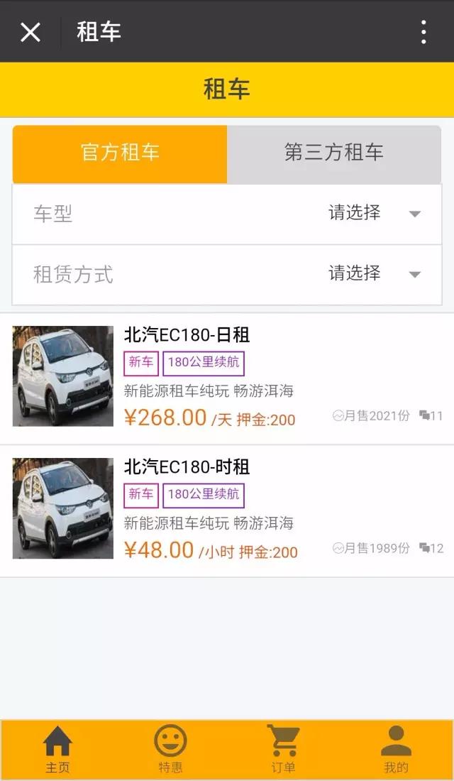 Step2:根據(jù)用車需要,選擇“日租”或“時租”,并填寫本人真實信息進(jìn)行購買下單,下單成功后手機(jī)將會收到短信驗證碼;