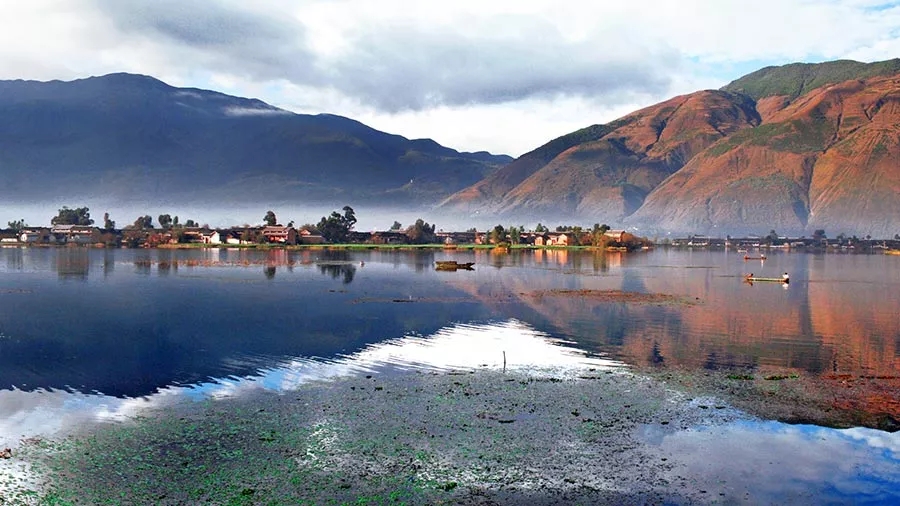 洱源西湖,位于大理白族自治州洱源縣右所鎮(zhèn)西部的佛鐘山麓,為高原平壩淡水湖,是洱海源頭一處如人間仙境般的碧池。湖中有六村七島,構(gòu)成村內(nèi)有湖,湖中有村的天然畫景。洱海西湖既有杭州西湖的嫵媚,又有高原湖泊濕地的開放氣勢(shì),素面朝天,渾然天成。來(lái)到西湖,乘一艘木船,持木漿,慢慢劃開水面,劃過(guò)水草,在如鏡的西湖水面上緩慢漂游。環(huán)過(guò)湖中的每一個(gè)小島,享受悠閑平靜。