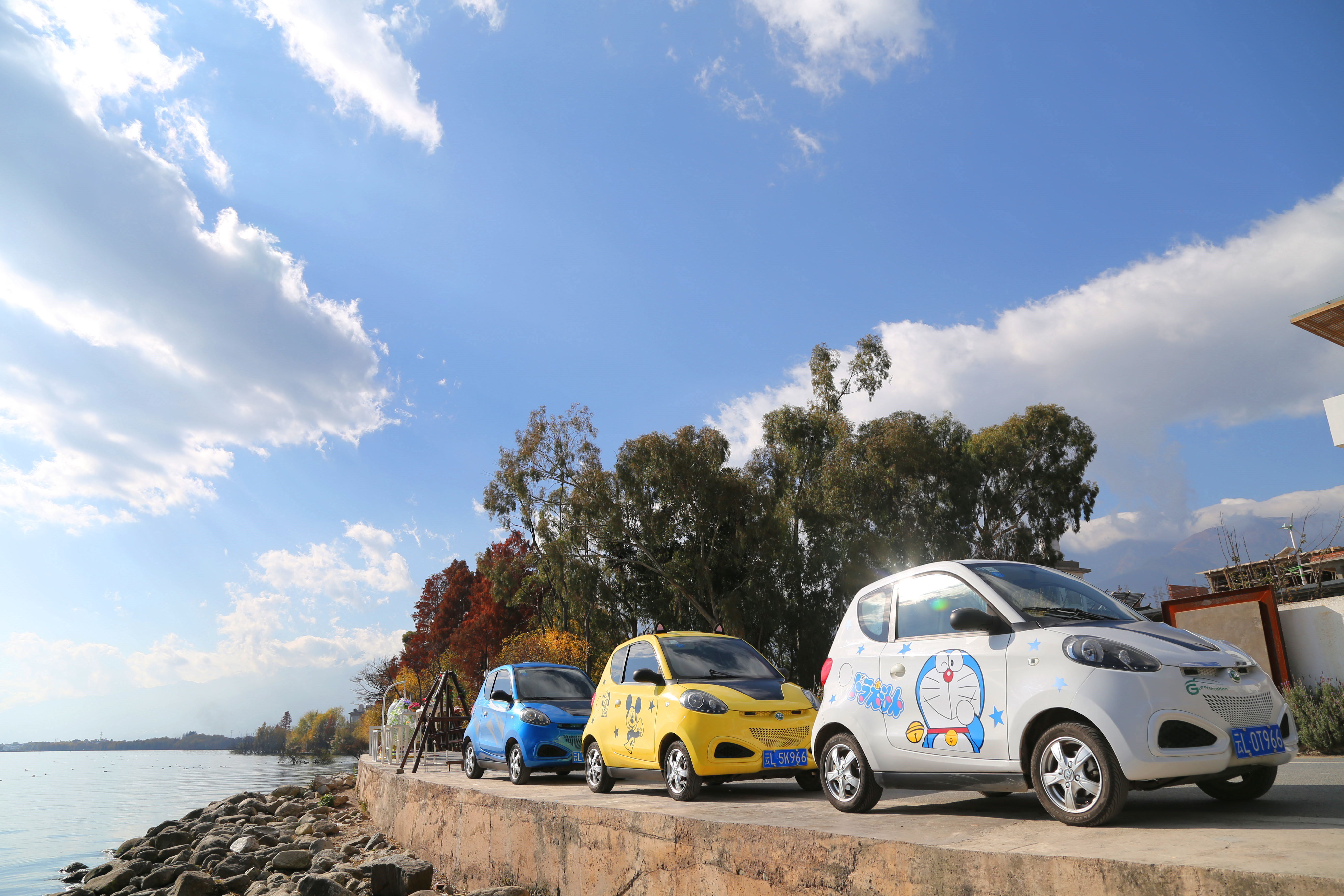 所有車輛均為充電式新能源車,滿電狀態(tài)可續(xù)航180公里。隨車配備充電線,行駛過(guò)程中可在洱海邊“特來(lái)電”充電樁補(bǔ)充充電。