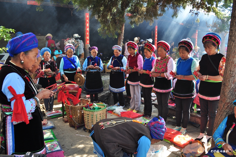 在白族地區(qū),村村都有本主廟,供奉著各自崇信的本主木雕神像以及本主的后妃子女、六畜大王、子孫娘娘等配神。本主崇拜雖然沒(méi)有系統(tǒng)的教義教規(guī),但已形成全民族統(tǒng)一的信仰和系列的祭祀活動(dòng)。