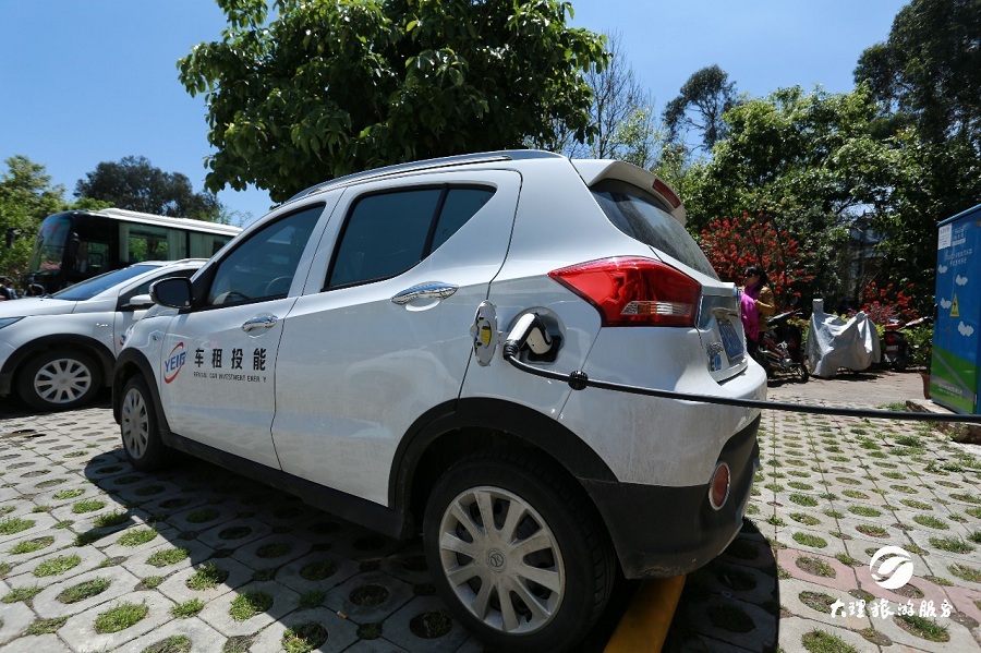 所有車輛均為充電式新能源車,滿電狀態(tài)可續(xù)航180公里。隨車配備充電線,行駛過程中可在洱海邊“特來電”充電樁補充充電。