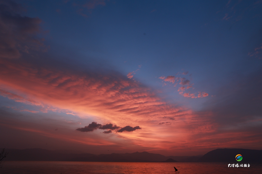 日出日落,哪里都能看的到,哪里都是東升西落。然而,在大理這座寧靜的古城,你看到的日出日落卻又不一樣??偰芗ぐl(fā)你心里那隱藏多年的詩意。“落霞與孤鶩齊飛,洱海共長天一色,漁舟唱晚,響窮葉榆之地”。