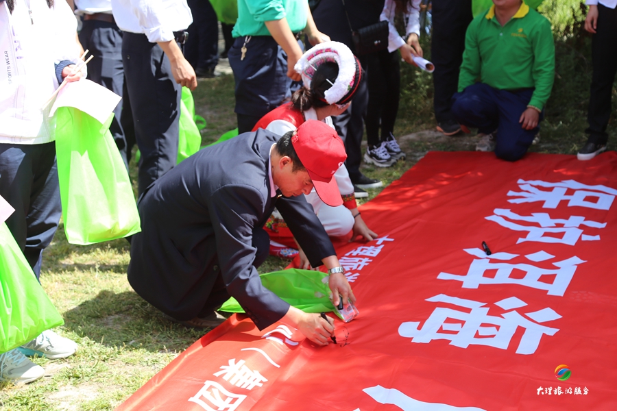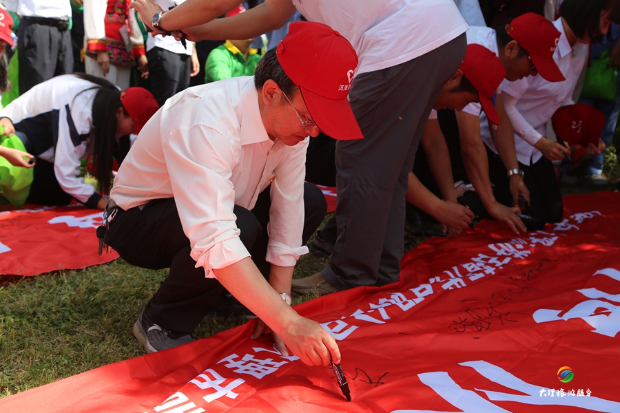 最后,大家自愿的在“保護洱海 從我做起”的宣傳標語上簽上名字。每個人都知道,簽上的不只是一個名字,而是一份責任,一份使命,一份保護洱海的“軍令狀”。