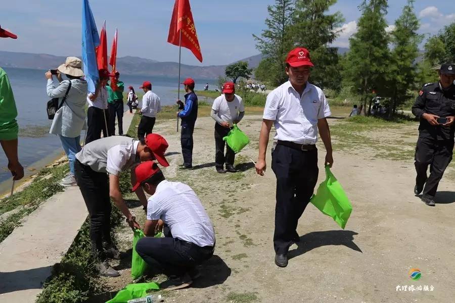 5月9日,大理旅游集散中心(集團)有限公司、大理旅游古鎮(zhèn)開發(fā)有限公司、大理市喜洲旅游服務(wù)有限公司、大理二中、大理一邦水業(yè)有限公司、大理喜林苑客棧有限公司、大理市海舍投資管理有限公司自發(fā)組織500余人對洱海周邊進行垃圾清理工作,并針對喜洲周圍居民開展洱海保護“七大行動”的宣傳活動。