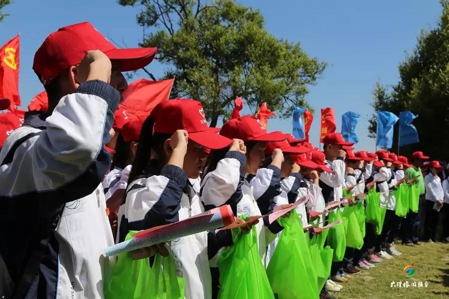 500多位青少年頭戴志愿者紅色標志帽,沿著喜洲古鎮(zhèn)、城北村、龍湖到海舌公園進行垃圾清理以及保護洱海“七大行動”的宣傳資料發(fā)放。驕陽烈日,汗水濕透了每一個志愿者的衣衫。徒步十多公里的路程,志愿者們熱情高漲,在洱海保護治理中爭做“洱海先鋒”,不覺得苦不覺得累。