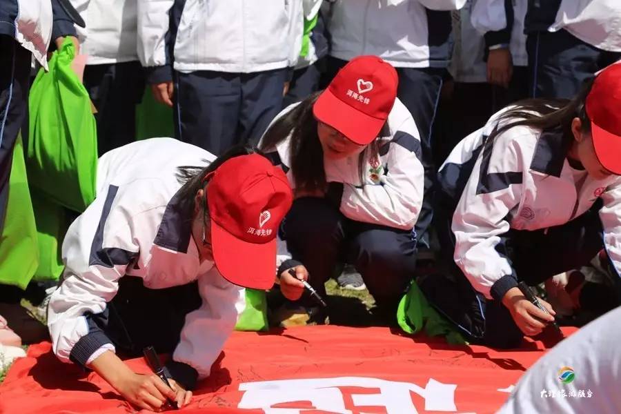 最后,大家自愿的在“保護洱海 從我做起”的宣傳標語上簽上名字。每個人都知道,簽上的不只是一個名字,而是一份責任,一份使命,一份保護洱海的“軍令狀”。