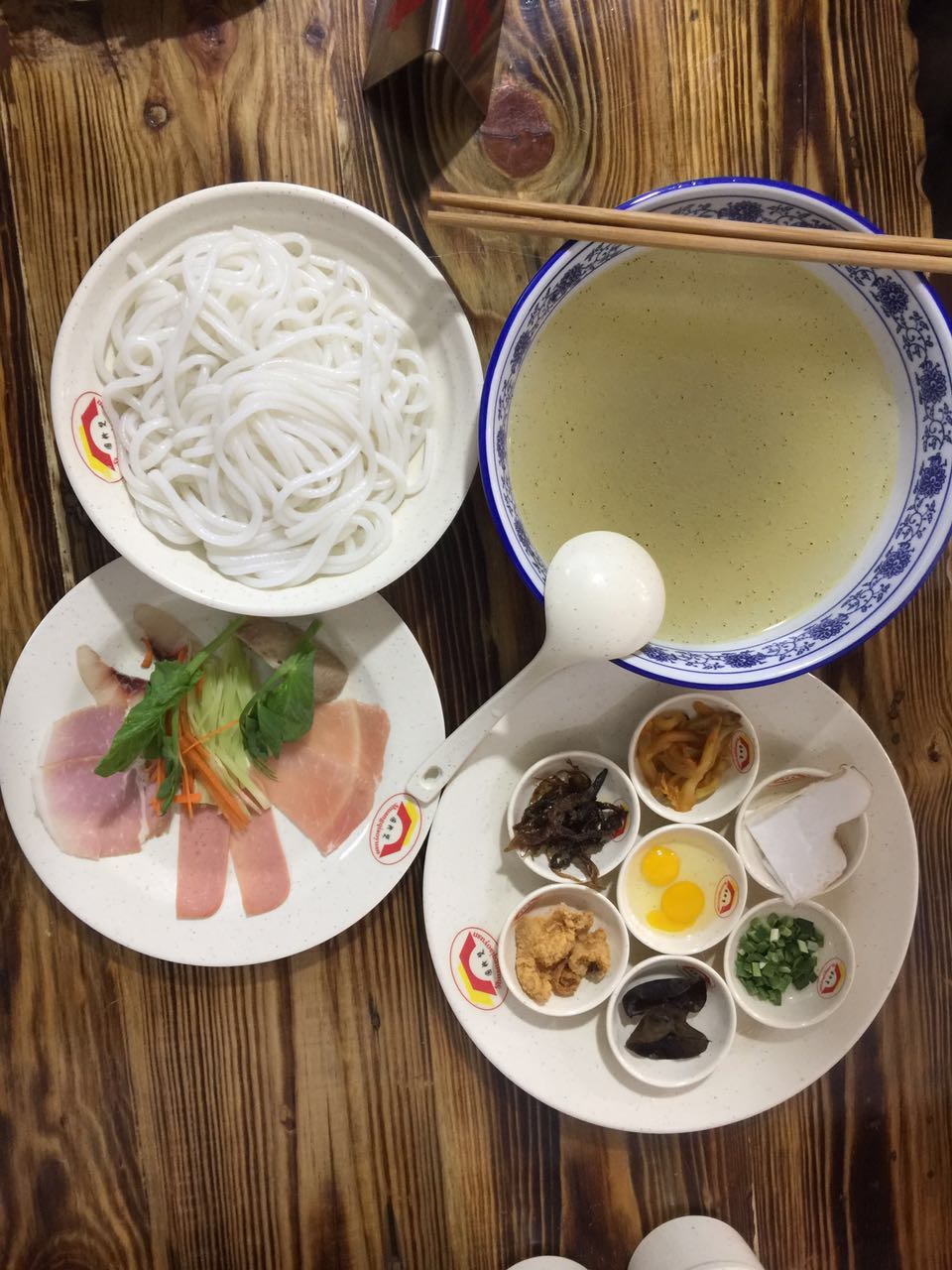 中午,在大理古城品一碗過橋米線,"過橋米線"是云南滇南地區(qū)特有的食品,已有百多年歷史,五十多年前傳至昆明。過橋米線由四部分組成:一是湯料覆蓋有一層滾油;二是佐料,有油辣子、味精、胡椒、鹽;三是主料,有生的豬里脊肉片、雞脯肉片、烏魚片,以及用水過五成熟的豬腰片、肚頭片、水發(fā)魷魚片;輔料有來過的豌豆尖、韭菜,以及芫荽、蔥絲、草芽絲、姜絲、玉蘭片、氽過的豆腐皮;四是主食,即用水略燙過的米線。鵝油封面,湯汁滾燙,但不冒熱氣。