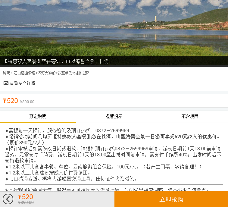 公司為了應景,特此在5月20日——6月30日這段時間推出了“戀在蒼洱 山盟海誓,一天告白 終生相伴”的告白模式。在這個時間內(nèi),你只需支付520元(原價是890)的告白費即可。 具體告白方式看這里?? 上午,出發(fā)乘坐蒼山感通索道,靜聽清碧溪緩緩流淌,清澈的溪水,幽靜的山林,“清泉石上流”。在蒼山上許下“白首不分離”的誓言。 圖/趙康才 部分源于網(wǎng)絡 中午,在大理古城用心品嘗為愛而制作出來的過橋米線。飯后,到蔣公祠看一看。在祠內(nèi)擁著愛人、聽著洞經(jīng)古樂,此時此刻只希望時間就此停留。 下午,將乘坐洱海大游船,在碧綠的湖面上,清風徐來。在羅荃半島上靜聽海風講述南詔公主(望夫云)與獵人啊鵬(石騾子)的凄美愛情故事。據(jù)說在望夫云和石騾子面前許下的誓言都會實現(xiàn),特此,也有很多熱戀、新婚的情侶夫妻來到這里,一起在蒼山洱海許下山盟海誓,也有很多老年夫妻來到這里,只是為了告訴蒼山洱海,他們之前許下的誓言已經(jīng)全部實現(xiàn)。 晚上,和她(他)一起吃燭光晚餐后,到“風花雪月”里的風城下關欣賞大型歌舞劇“蝴蝶之夢”演出(免費贈送,原價390元)。晚上大理古城到下關是否交通方便?NO!NO!NO!你只需要牽著她(他)的手,給她(他)一個難忘的告白方式就行,交通我來解決。