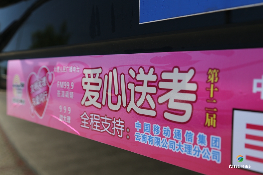 這是大理旅游集散中心(集團)有限公司第八年參與“愛心送考”活動,公司本著“愛上大理,感謝有您”的企業(yè)文化,讓每一個考生出行無憂,高考期間,考生們在古城內(nèi)還可免費乘坐觀光游覽車。