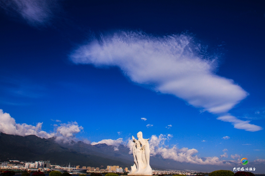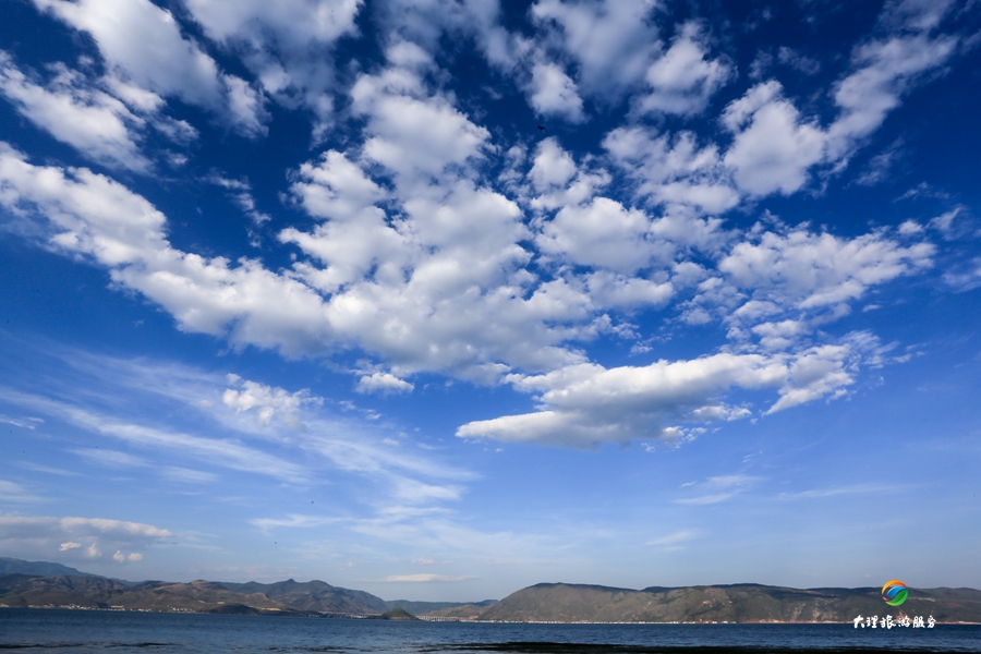 天空分外藍(lán),白云像輕紗一樣在藍(lán)天飄蕩。