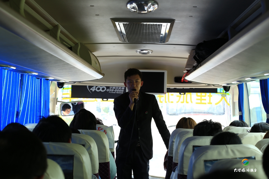 直通車緩緩駛出古城,在環(huán)海東路上悠閑的開向第一站——羅荃半島。一路上,帥氣的導(dǎo)游代宗平講起羅荃半島的歷史和傳說,一直停不下來,這邊講得起勁,旁邊的小伙伴也聽得津津有味,都顧不上欣賞窗外的美景了。