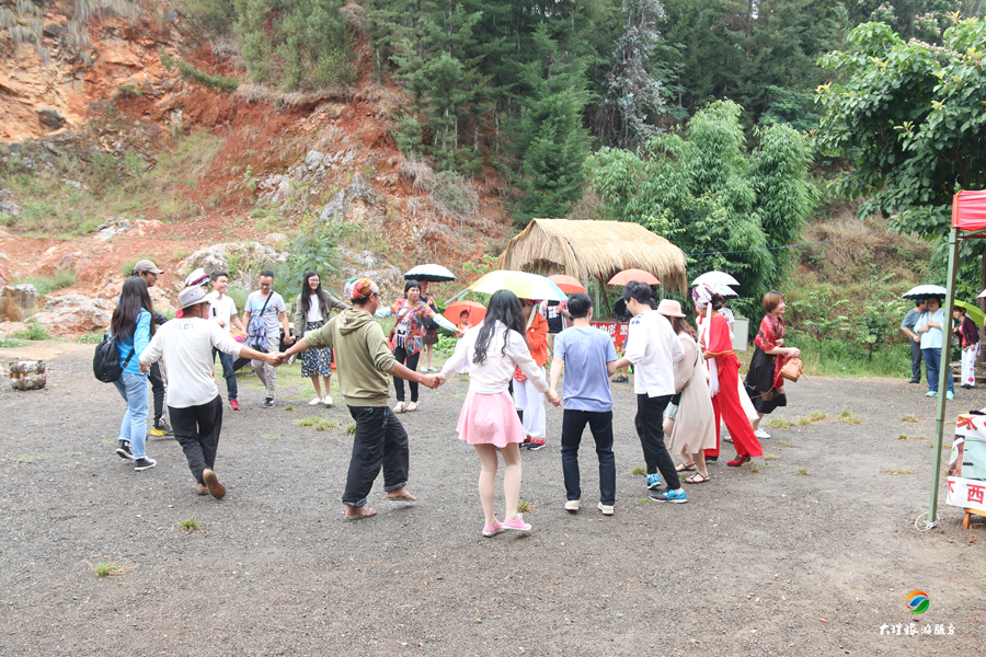 見識到水碓把糯米砸碎,好多人都在嘆息,一邊折服于古人的智慧,一邊慶幸自己還能見到這神器!體驗過后,金花們圍了上來,金花能歌善舞,這舞蹈怎么能少呢,一段地道本地舞提起了大家的興致,也拉近了大家的距離。