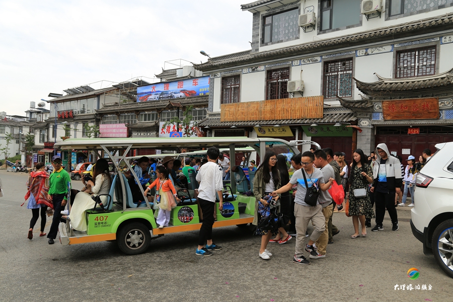 回到大理古城,觀光電瓶車早已等候大家歸來。因為古城是棋盤型的錯落格局,復(fù)興路將棋盤一分為二,類似楚河漢界,整個大理古城,素有九街十八巷之稱,商業(yè)街,客棧路,酒吧道,不管你喜歡哪一種風(fēng)格的古城,乘坐觀光電瓶車游覽古城都是必不可少的。