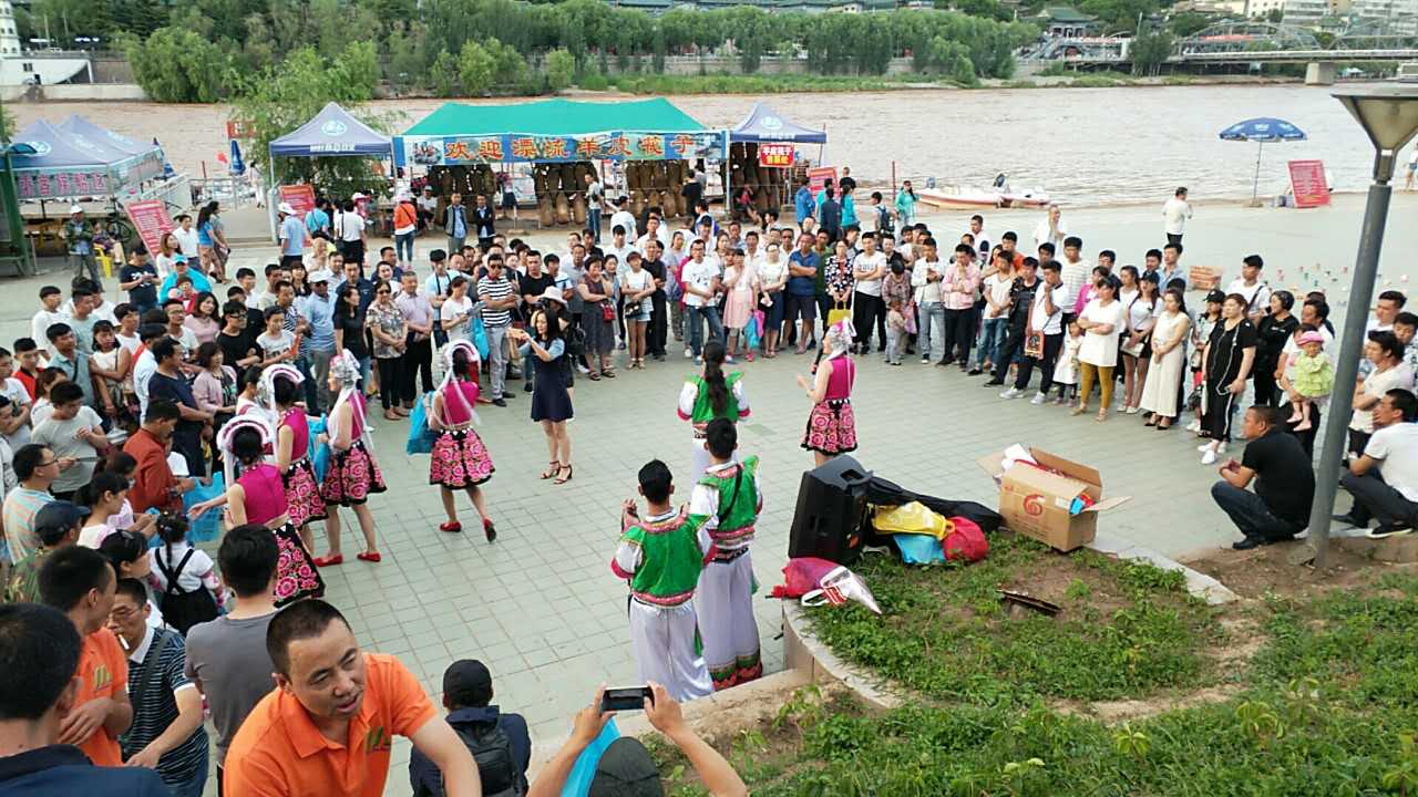 大理旅游推介團(tuán)在黃河岸邊為蘭州市民表演白族舞蹈。