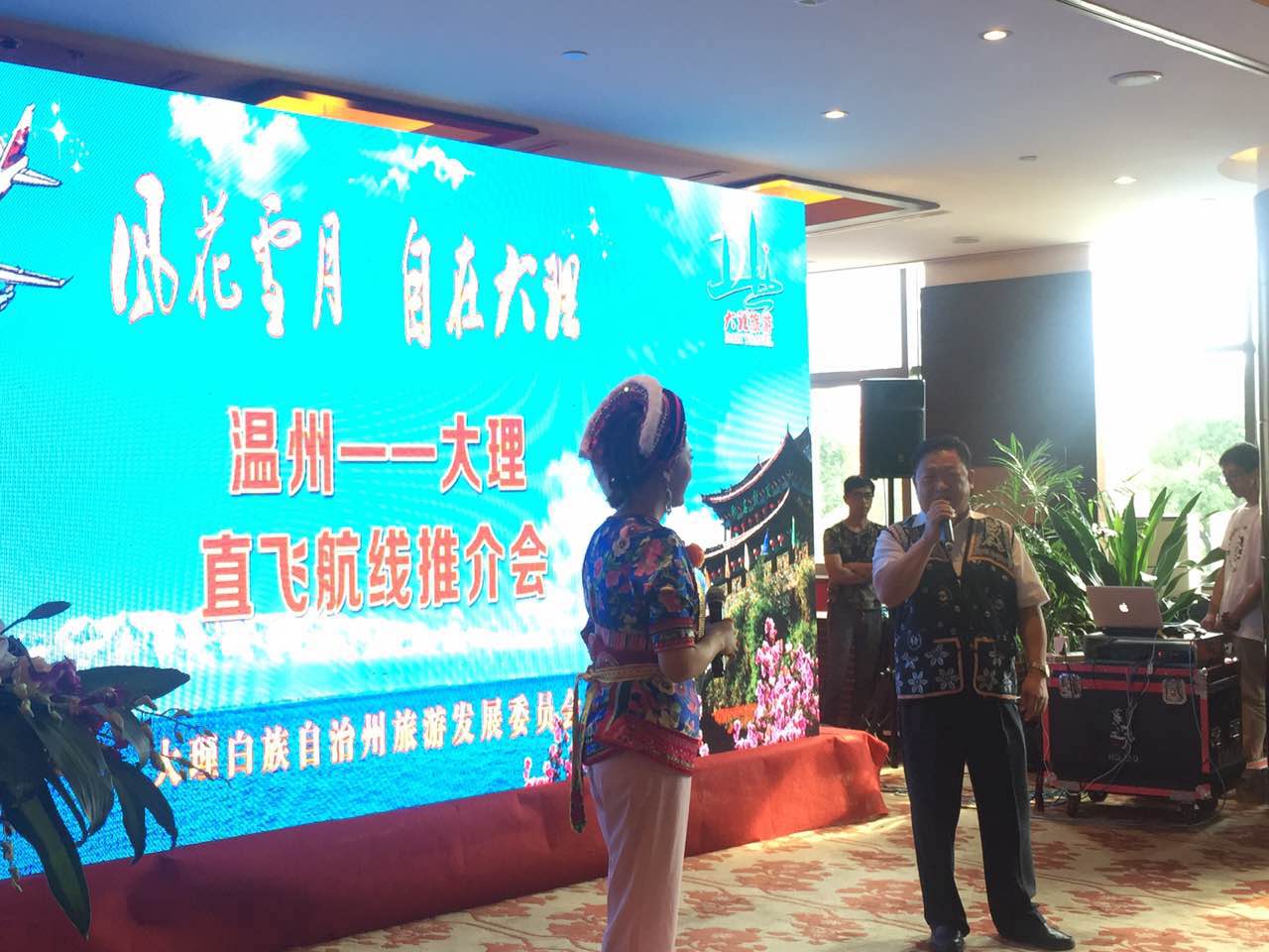 大理州旅游發(fā)展委員會(huì)副主任馬金鐘為溫州人民唱響“大理三月好風(fēng)光”▲