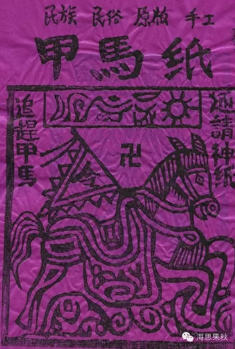 甲馬在“文革“中被視為“四舊”、迷信的東西,而現(xiàn)在則成為一種民間藝術(shù)、一種獨特的文化現(xiàn)象。由于甲馬有獨特、深厚的文化藝術(shù)內(nèi)函和獨特的表現(xiàn)形式和用途,因而具有一定的研究和收藏價值。