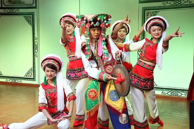在這里,你還能欣賞到大本曲與由花甲老人們演奏的大理洞經(jīng)古樂,還有甲馬紙印刷、扎染制作、沱茶制作等技藝表演。