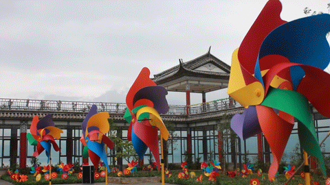 羅荃半島上到底有多少風(fēng)車?從門口到玉案大觀園,從玉虹橋到羅荃塔,隨處可見由彩色風(fēng)車鋪滿的風(fēng)車主題廣場、風(fēng)車大道、風(fēng)車隧道和風(fēng)車墻。十萬只風(fēng)車布滿景區(qū),儼然變成了一個(gè)“風(fēng)車王國”。不管走到哪里,都能看到風(fēng)箏隨風(fēng)轉(zhuǎn)動(dòng)的樣子。小編最喜歡的還是風(fēng)車隧道,滿滿的風(fēng)車掛滿整個(gè)隧道,像是彩虹,既夢幻又觸手可及,少女心爆棚?。?/p>
