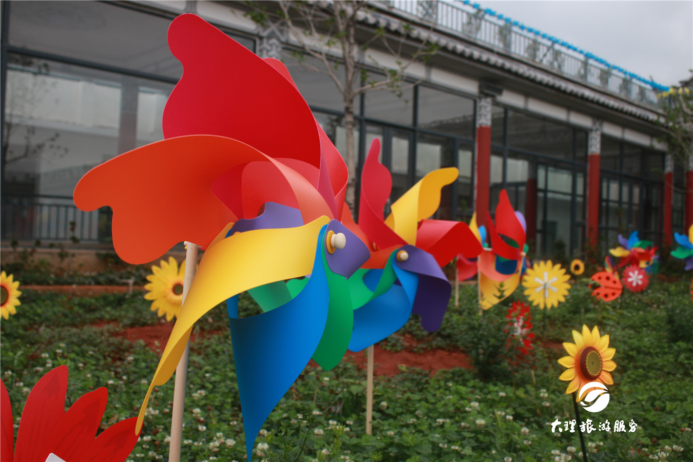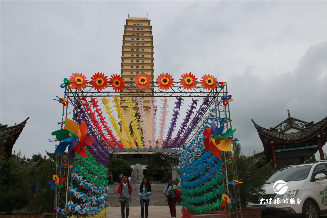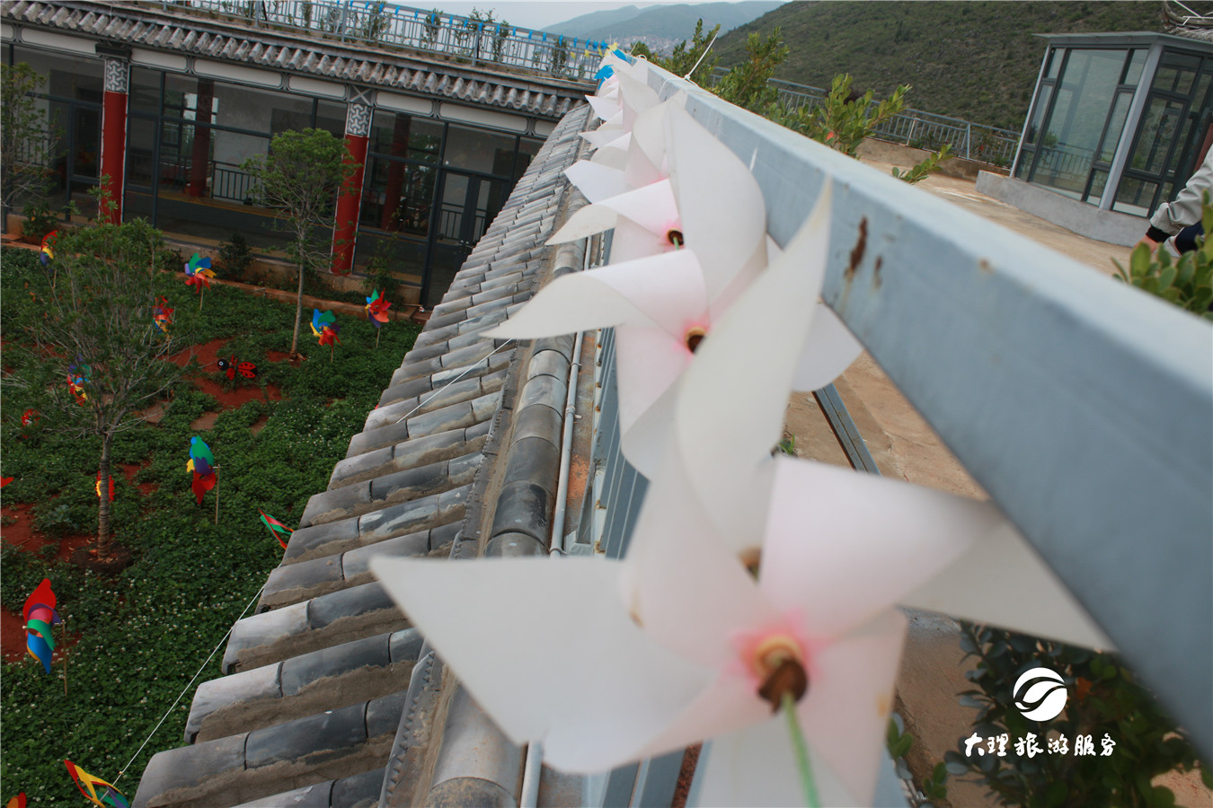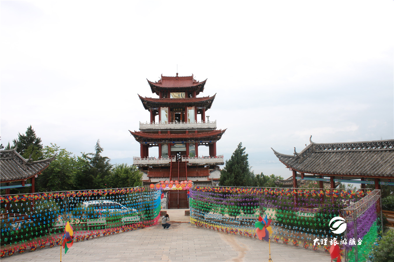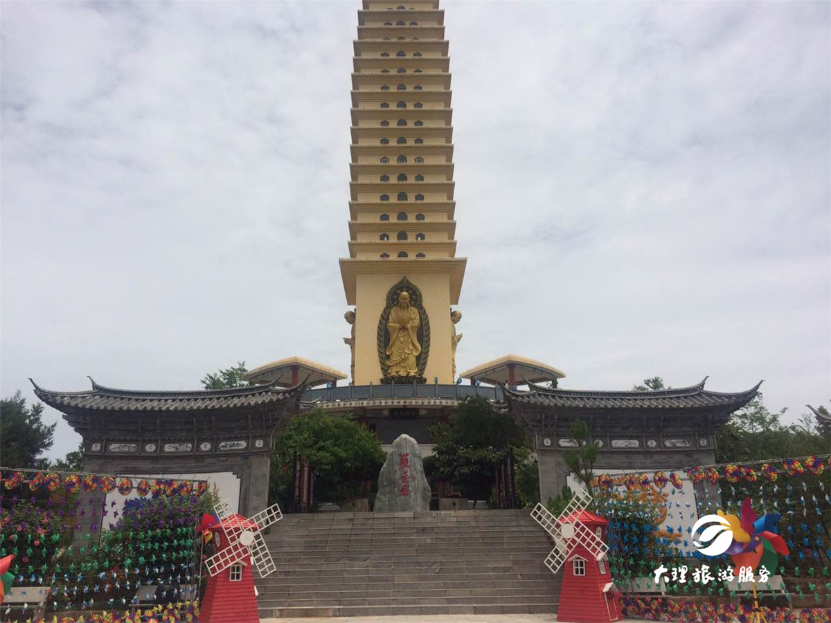 偷偷告訴你,風(fēng)車主題廣場里有個(gè)四米高的大風(fēng)車喲!這么高大的風(fēng)車,簡直壯觀! 除了風(fēng)車,還有這些新玩場! 羅荃半島位于洱海東岸。半島三面環(huán)水,風(fēng)光秀麗,與大理古城隔海相望,是觀賞蒼山洱海美景的最佳地理位置。在羅荃半島,不僅可以觀賞五彩斑斕的風(fēng)車,你還可以玩這些! “七彩”高山漂流 滇西最長的水滑道娛樂項(xiàng)目,全長600米,在高低錯(cuò)落的峽谷和叢林穿行,體驗(yàn)過的小伙伴肯定知道它究竟有多刺激啦!為什么是七彩的呢?因?yàn)榧彼傧禄母呱狡骰郎弦蹭仢M了風(fēng)車哦!簡直又刺激又夢幻! 玉案大觀園 “玉案大觀園”位于羅荃半島旅游區(qū)地勢最高,視野最好的地方。大觀園是個(gè)觀賞大理蒼洱風(fēng)光效果極佳的多功能廣場。風(fēng)車主題廣場就在這里哦!大大小小的風(fēng)車把這個(gè)地方妝點(diǎn)得像個(gè)童話世界。 羅荃塔 羅荃塔重修后保留了四方密檐和無頂?shù)闹饕攸c(diǎn)。高42.9米,有16級檐口,四面還有羅荃法師慈悲喜舍法相。塔內(nèi)設(shè)有電梯,游人可登頂。站在塔頂就可以把整個(gè)洱海盡收眼底,視野開闊之后,整個(gè)人都會(huì)變得很明朗哦!心情不好與不好,那都是可以去體驗(yàn)體驗(yàn)的! 天鏡閣 洱海四大名閣中,天鏡閣最富盛名?,F(xiàn)在的天鏡閣雖無臨海之奇險(xiǎn),但閣高廊闊,登高遠(yuǎn)眺的視野更為寬廣。天鏡閣上面掛滿了風(fēng)車,風(fēng)一吹,整個(gè)閣樓都靈動(dòng)起來。
