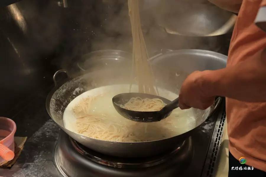 從這一套套的餌絲來(lái)看,巍山人對(duì)“吃”是真的很講究。餌絲從清湯碗里一點(diǎn)一點(diǎn)分到帶佐料的扒肉湯里,扒肉吃在嘴里,肥而不膩,細(xì)膩回甜,餌絲質(zhì)地細(xì)膩,柔軟糯香。