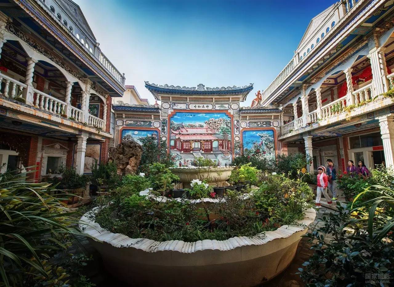 照壁前面還有花臺(tái)陪襯,花臺(tái)多用彩花大理石或雕磚砌成,內(nèi)栽花木,旁邊臺(tái)欄上還放置各種盆花、盆景,各種花卉因季節(jié)交相開放,香氣襲人,環(huán)境優(yōu)雅。