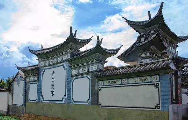 白族民居照壁的典故題識(shí),表明了白族人民對(duì)祖先的道德風(fēng)范的崇敬和懷念,也從一個(gè)側(cè)面說(shuō)明白族人民對(duì)漢文化的吸納和弘揚(yáng)。每一塊照壁,代表著一個(gè)姓氏,或是一個(gè)故事,一種家風(fēng),一種傳承。