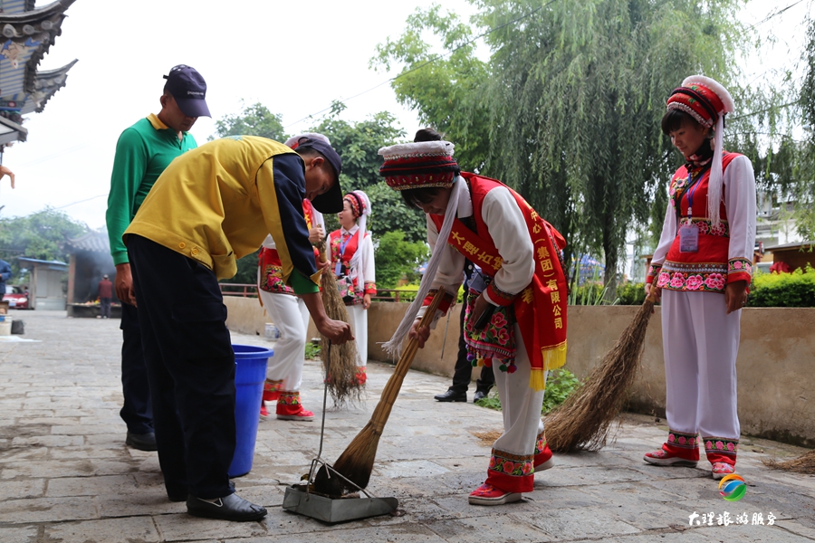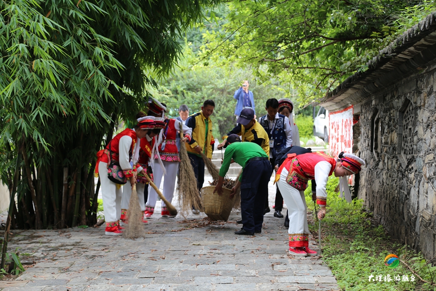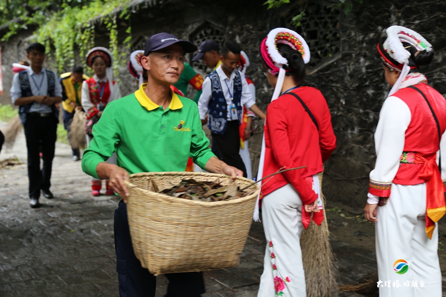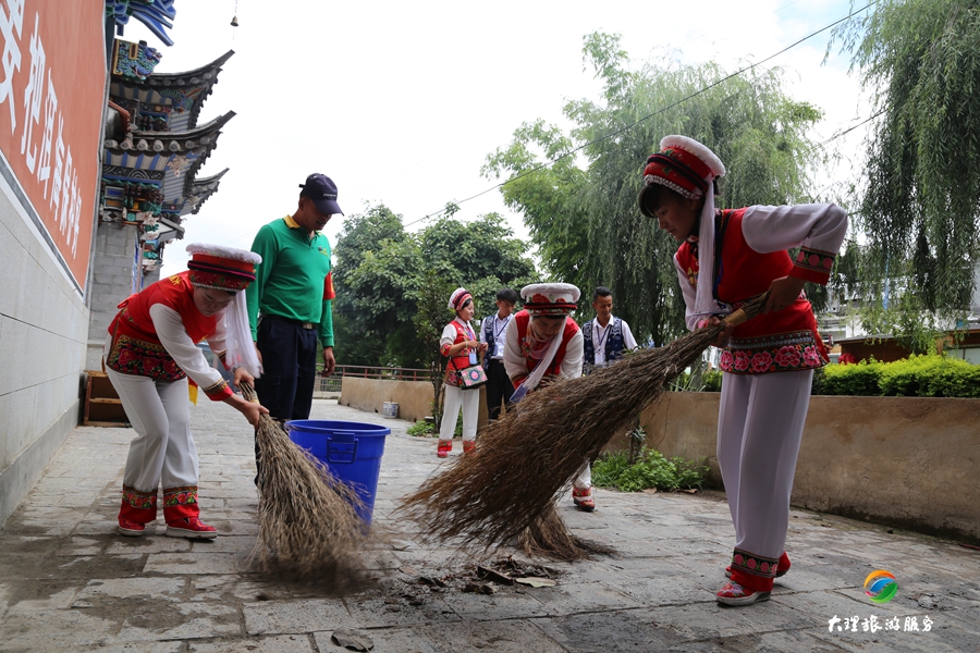 8月30日下午,大理旅游集散中心組織員工對大理古城游客服務中心至城隍廟之間的路段進行集中清理打掃。