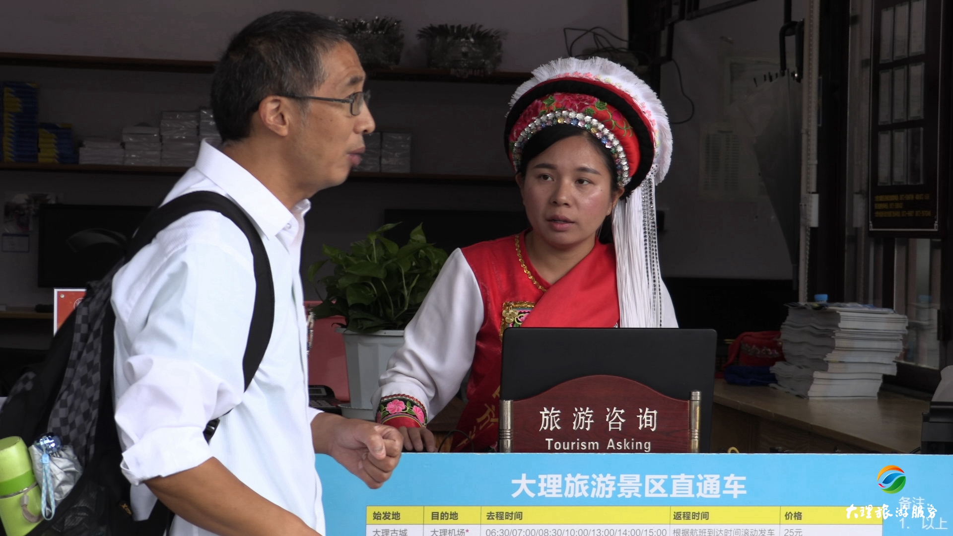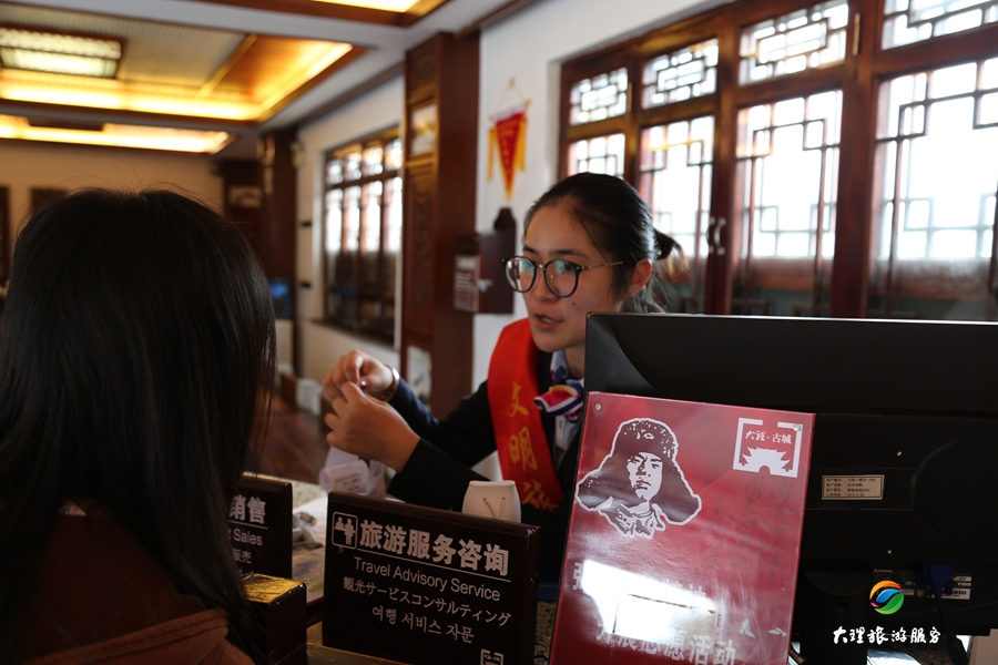 高梅告訴我們,每天早上七點多,來到工作崗位的第一件事,就是把創(chuàng)建文明城市的宣傳資料擺放整齊,在游客前來咨詢業(yè)務時,她會把創(chuàng)建文明城市的重要意義告訴游客,并向游客宣傳大理創(chuàng)建文明城市,感謝游客與大理市民一起參與到創(chuàng)建文明城市工作中,并感恩游客對大理創(chuàng)建文明城市工作的支持。
