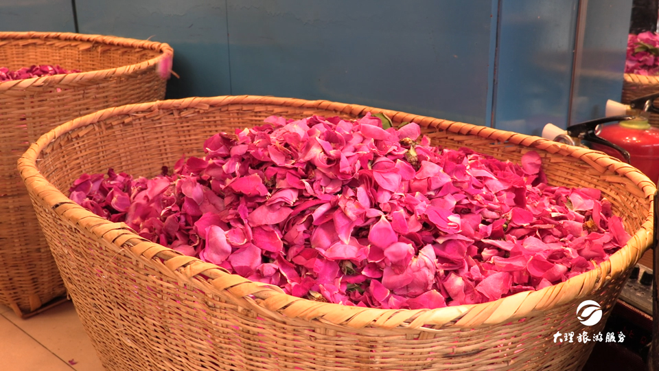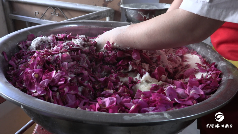 大理得天獨厚的氣候條件,使得這個地方四季如春,季季有花。“風花雪月”作為大理四大名景之一的“花”,可賞,可食,是大理人獨特的一種飲食文化。鮮花餅,最妙的口感就在于一個“鮮”字?;ò曜鳛橹饕氖巢?,需要當天采摘。當天使用的花瓣,當天采摘。
