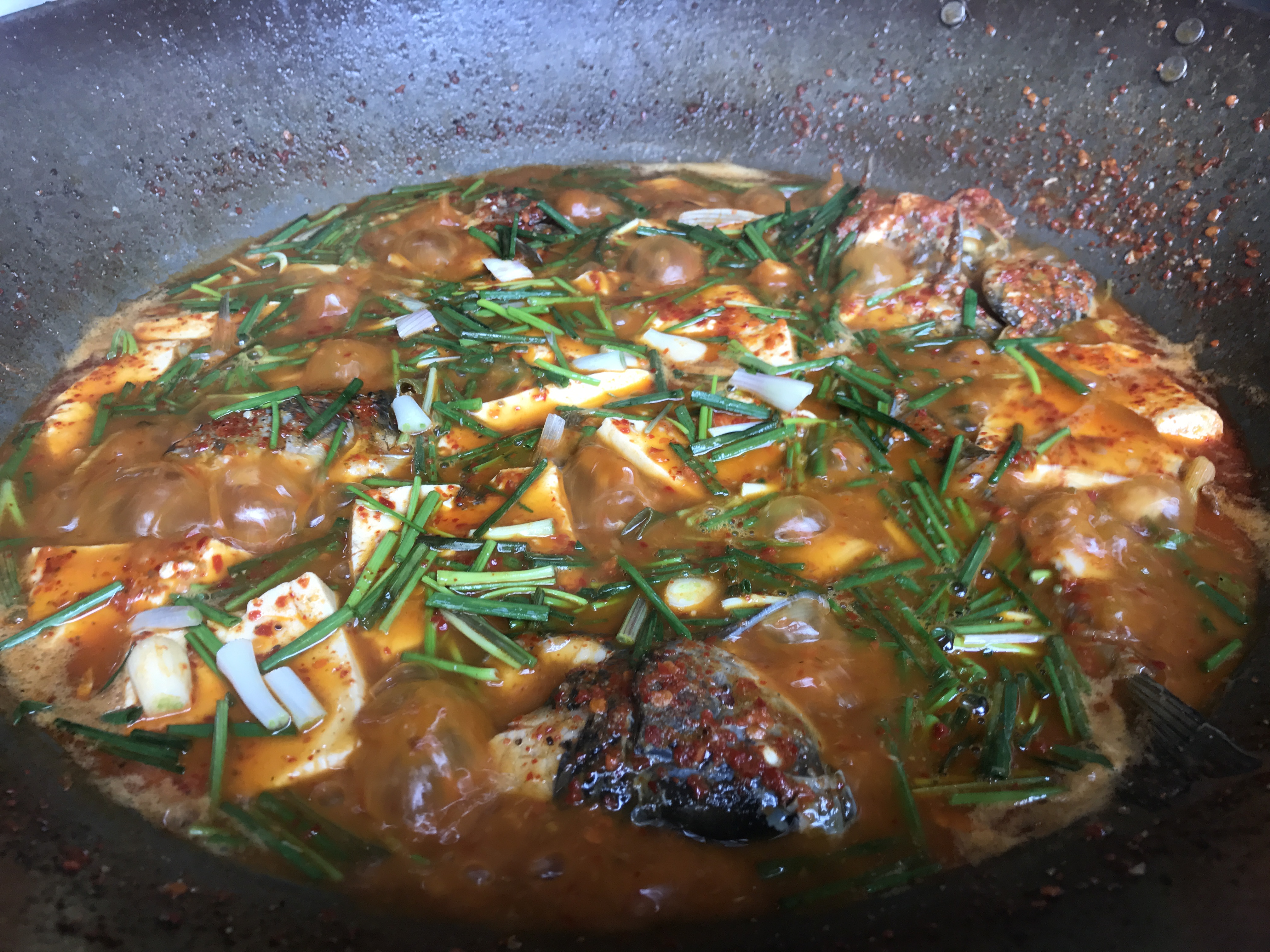 鍋燒熱,菜籽油下鍋,放入干木瓜、蒜瓣、姜絲炒香,加入山泉水,然后下魚。加入調(diào)料,等湯煮開之后大火轉(zhuǎn)小火,大概煮到15分鐘的時(shí)候,就能聞到酸酸辣辣的味道了,然后再逐一放入洋芋、豆腐、藠頭等輔料,整個(gè)酸辣魚制作,全程大概需要25分鐘。