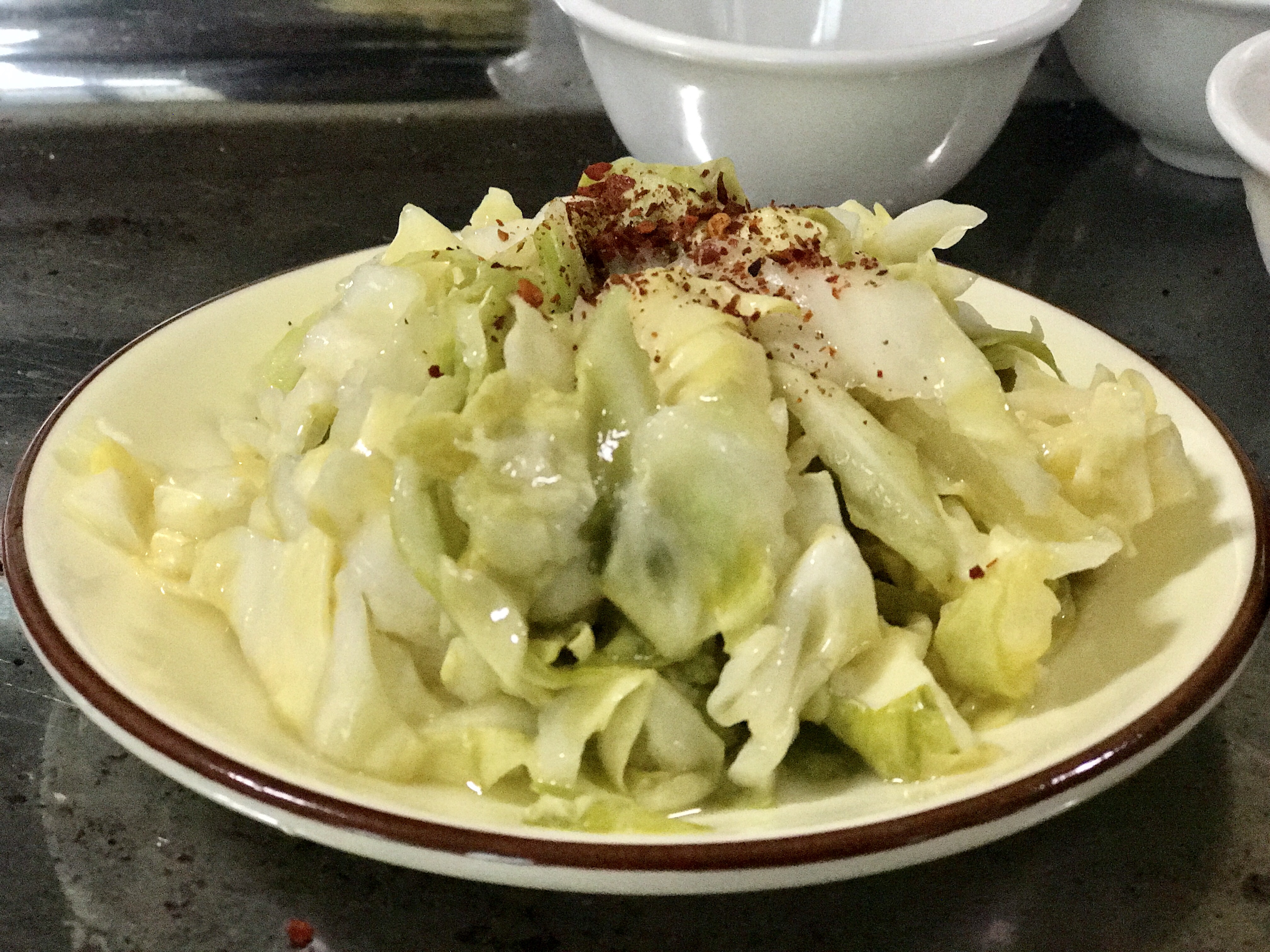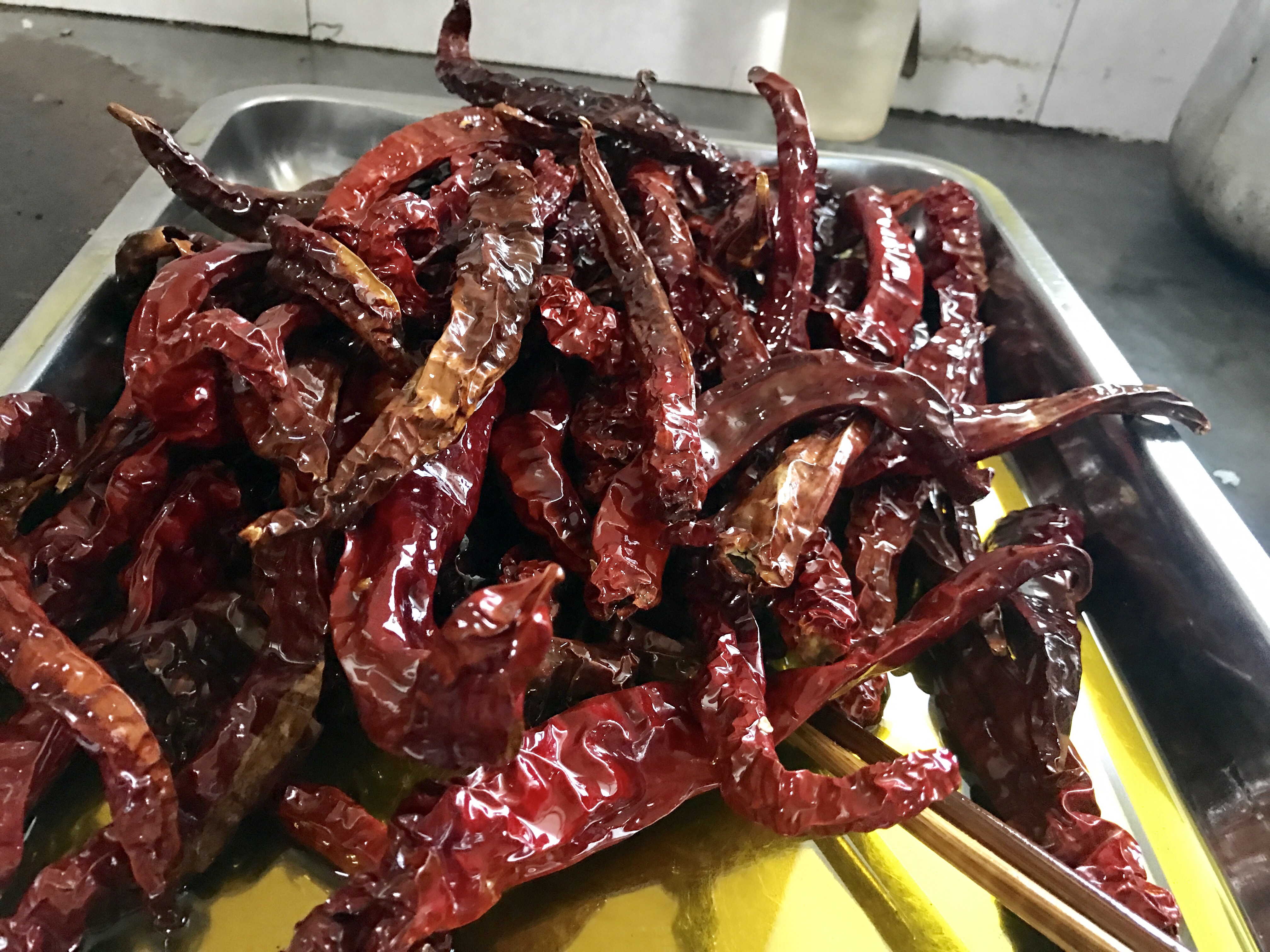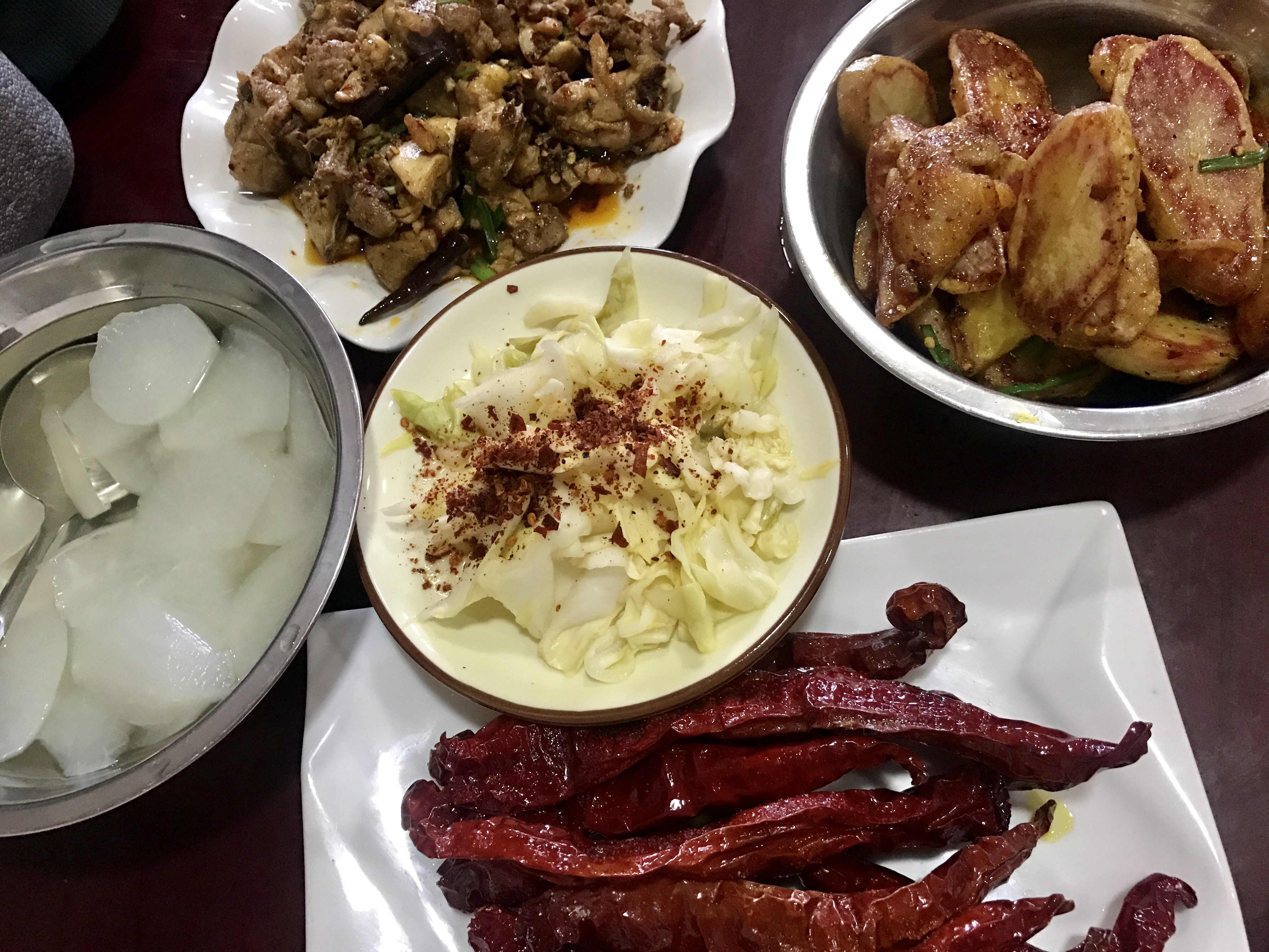 除了以上三道主食,還要配上兩道小菜,那才算完整。劍川自產(chǎn)的紅辣椒,曬干,炸酥,口感酥脆,辛甜。還有就是自家腌制的泡菜,解膩又下飯。