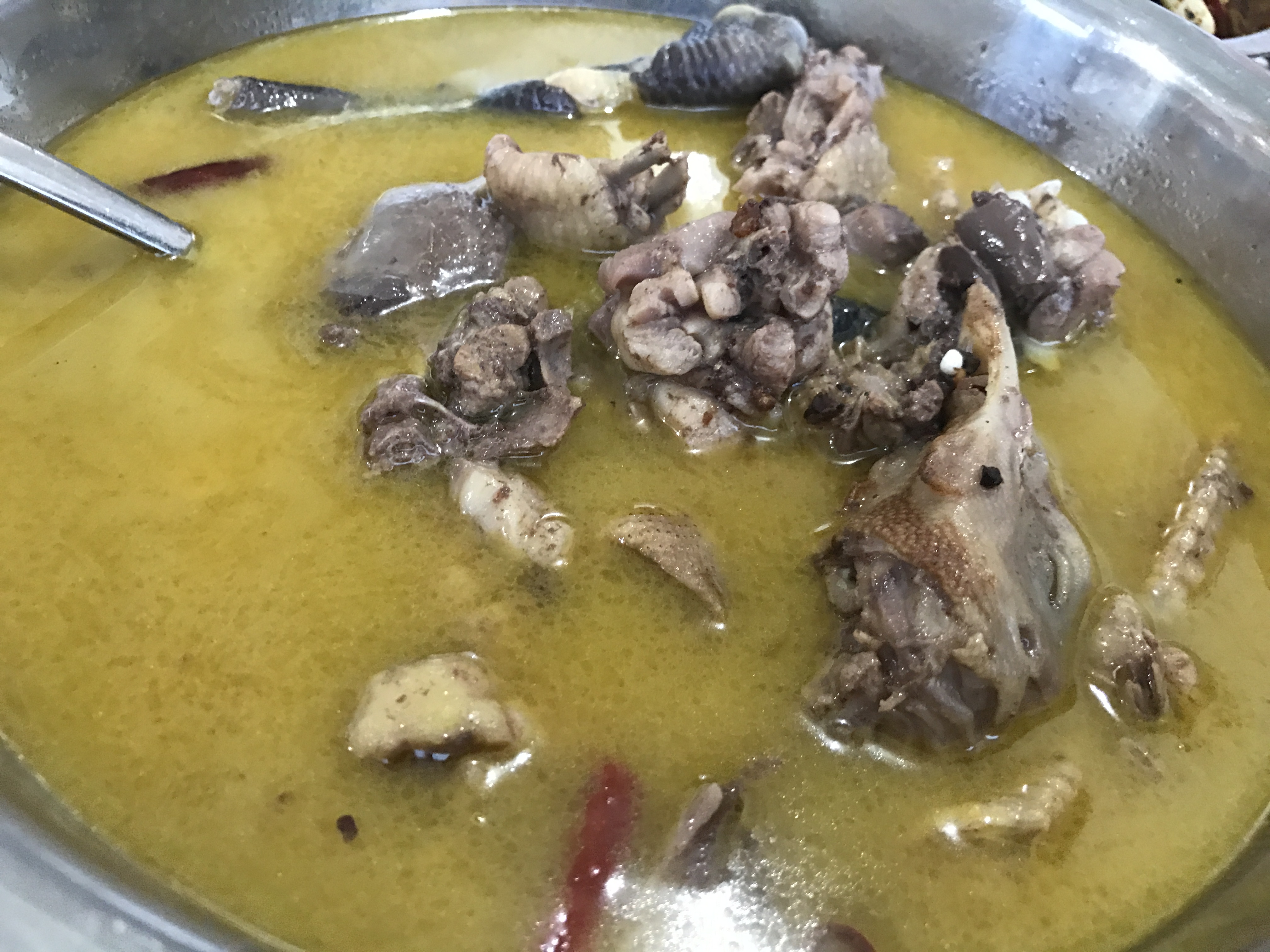 為什么要一雞兩吃呢?據(jù)了解,這道雞的準(zhǔn)確吃法是,先把肉好的雞身部分黃燜炒熟給客人吃,再加泉水將頭足、雞雜等部分清燉。黃燜爽口,清燉滋補(bǔ)。