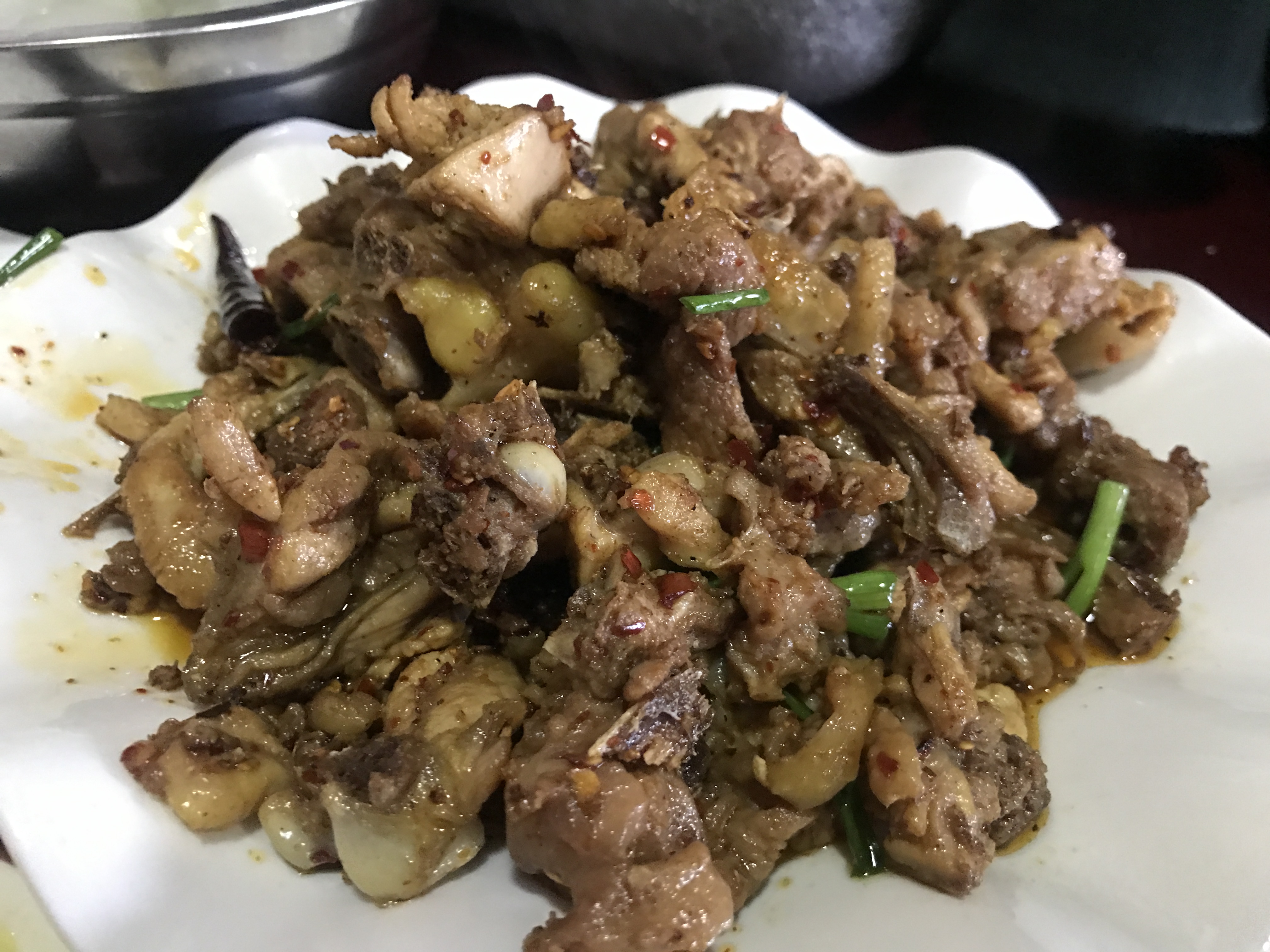 三道菜,吃的就是原生態(tài)。雞是自家放養(yǎng)的土雞,食草及綠色谷物、野果長(zhǎng)大。全天都在果園和山里覓食,肉質(zhì)也比較鮮美緊實(shí)。