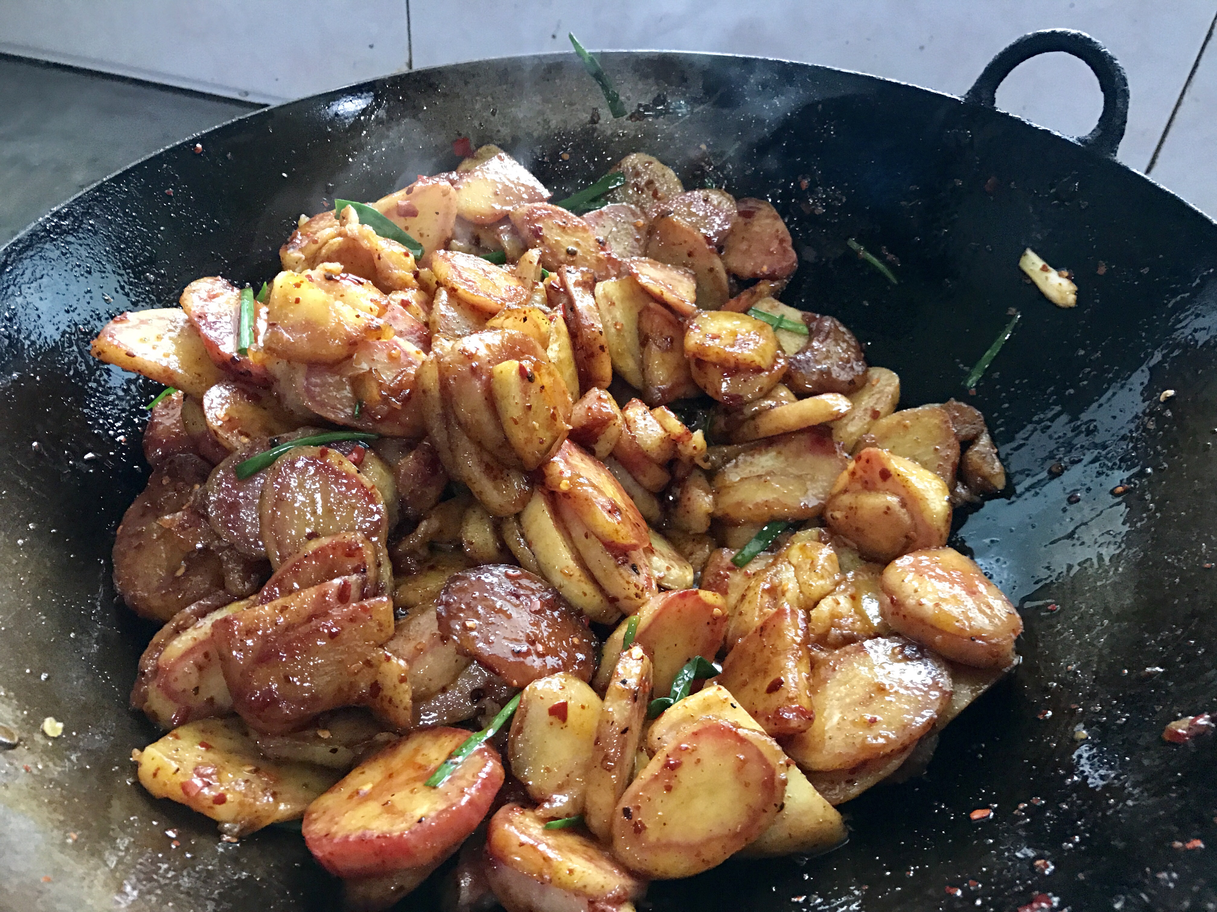 洋芋吃法多樣,可燒可煮,可煎可炸。但最受歡迎的吃法還是切成厚片,煎炸之后,輔以調(diào)料。